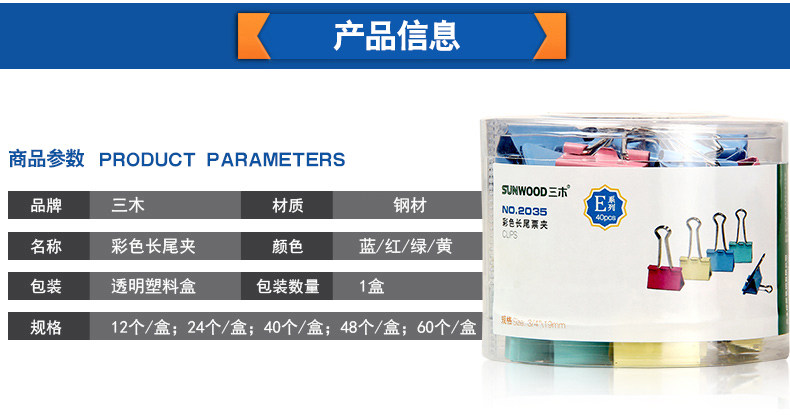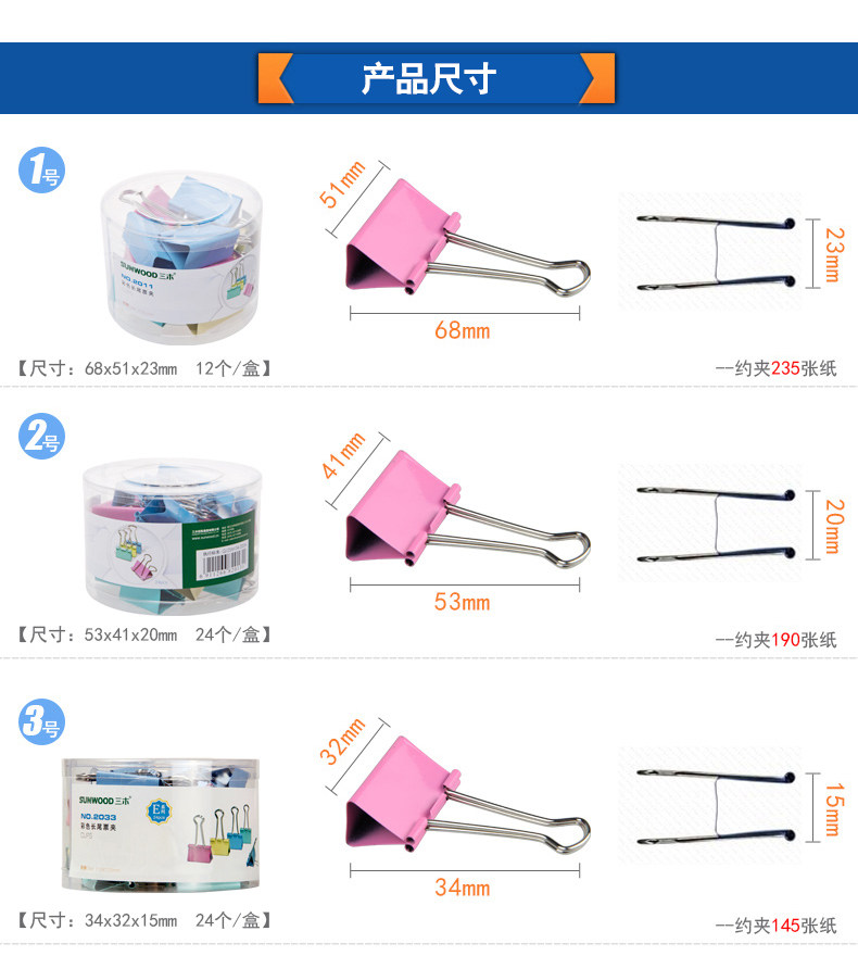 三木文件夹强力夹A4单夹双夹试卷夹蓝色办公用品档案资料册彩色