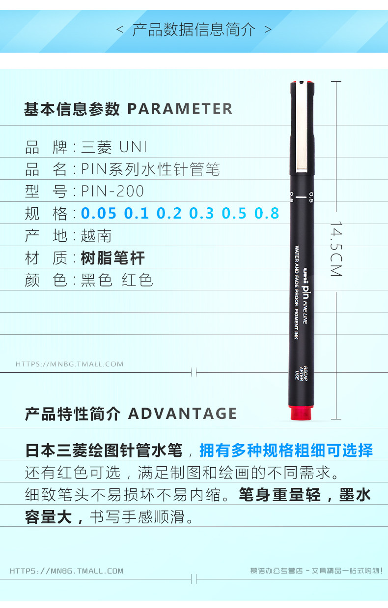 以下是日本UNI三菱绘图针管笔PIN-200水性勾线笔绘画水笔/005~08多规格的详细说明,厂家介绍,求购联系信息,最终解释权归三菱铅笔贸易(上海)有限公司所有