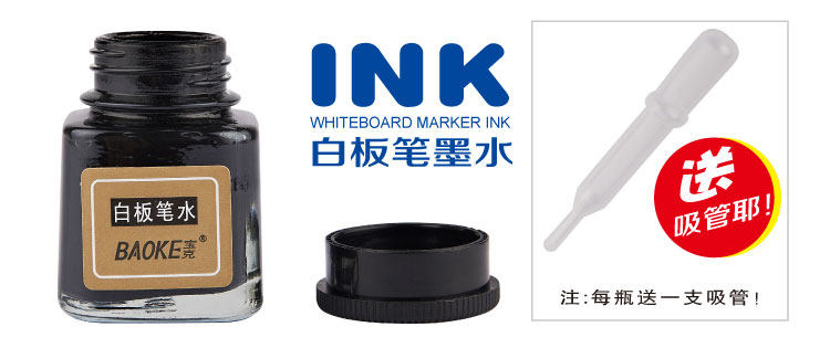 宝克白板笔墨水NO170白板笔补充液可擦白板笔大头笔墨水黑蓝红色