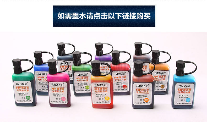 宝克记号笔墨水MS209记号笔补充液黑红色油性墨水仓库物流快递笔