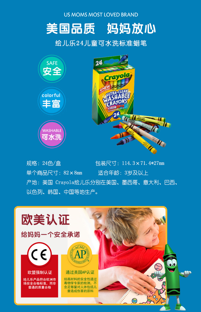 绘儿乐crayola 升级版可水洗水彩笔蜡笔颜料礼盒儿童学生涂鸦美术