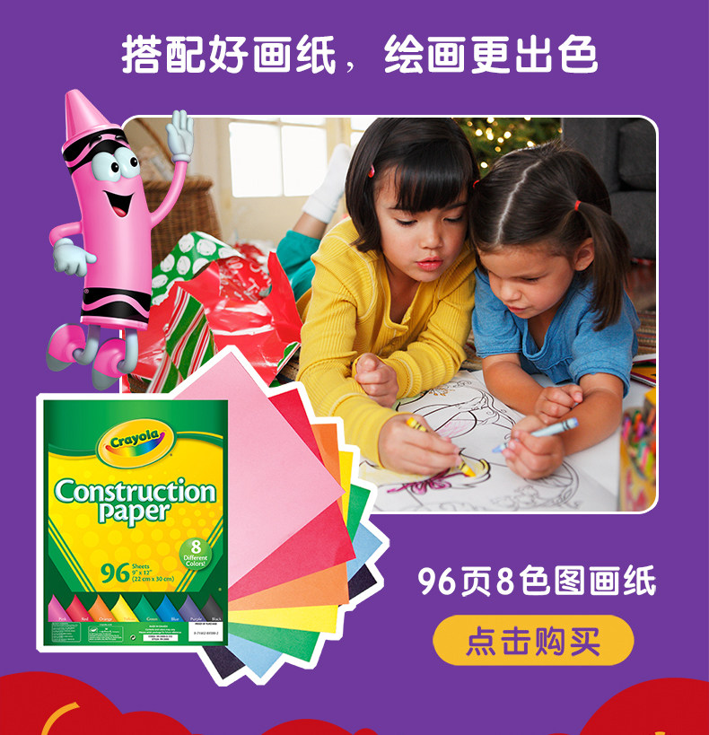绘儿乐crayola 画纸填色册绘画本96页8色涂鸦本玩具 99-3000