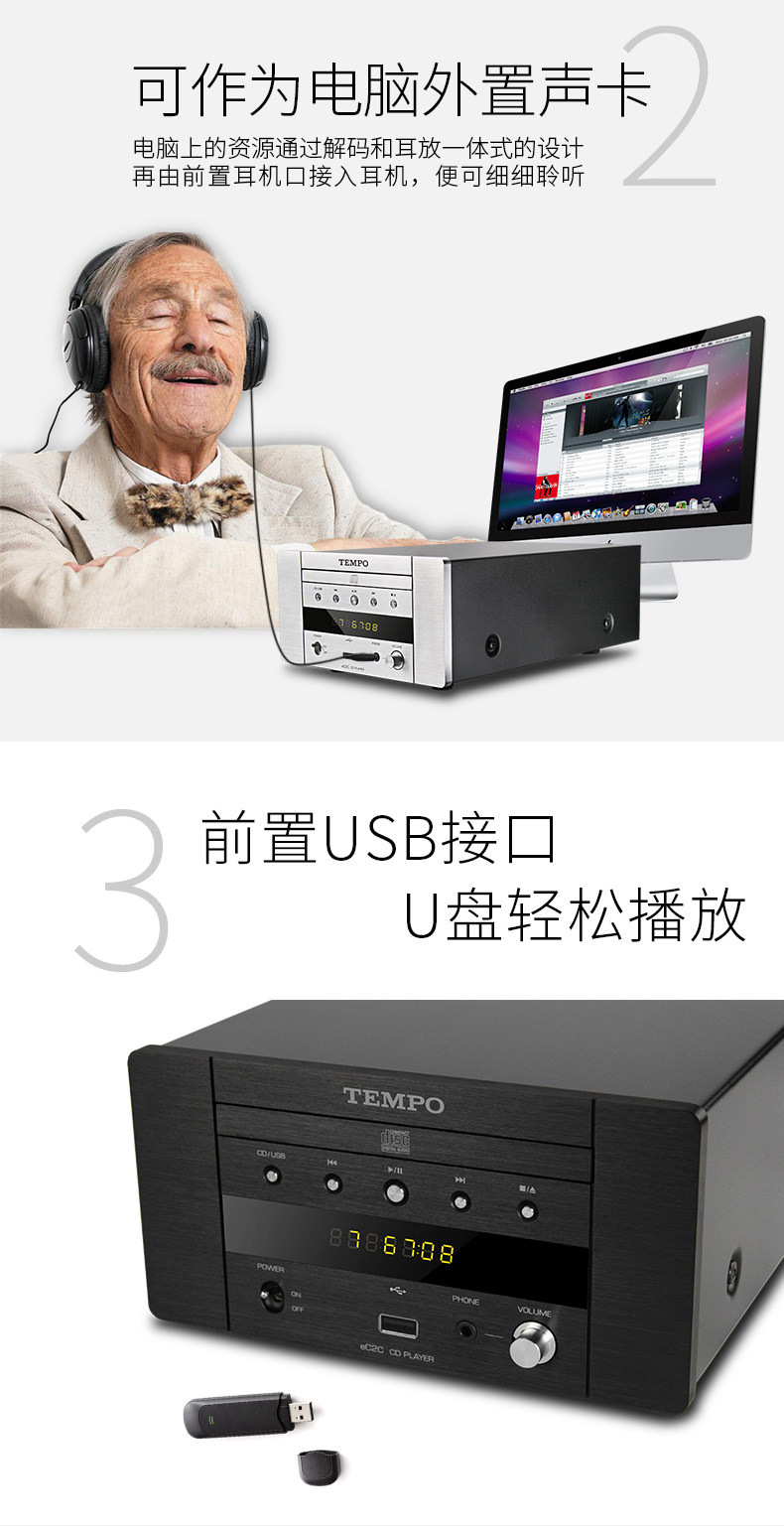 山灵韵律 EC2C HIFI发烧CD机 USB声卡 耳放迷你桌面音响家用音响