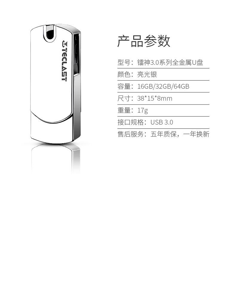 台电 U盘64g 高速3.0金属 64gu盘 定制刻字创意商务车载个性优盘