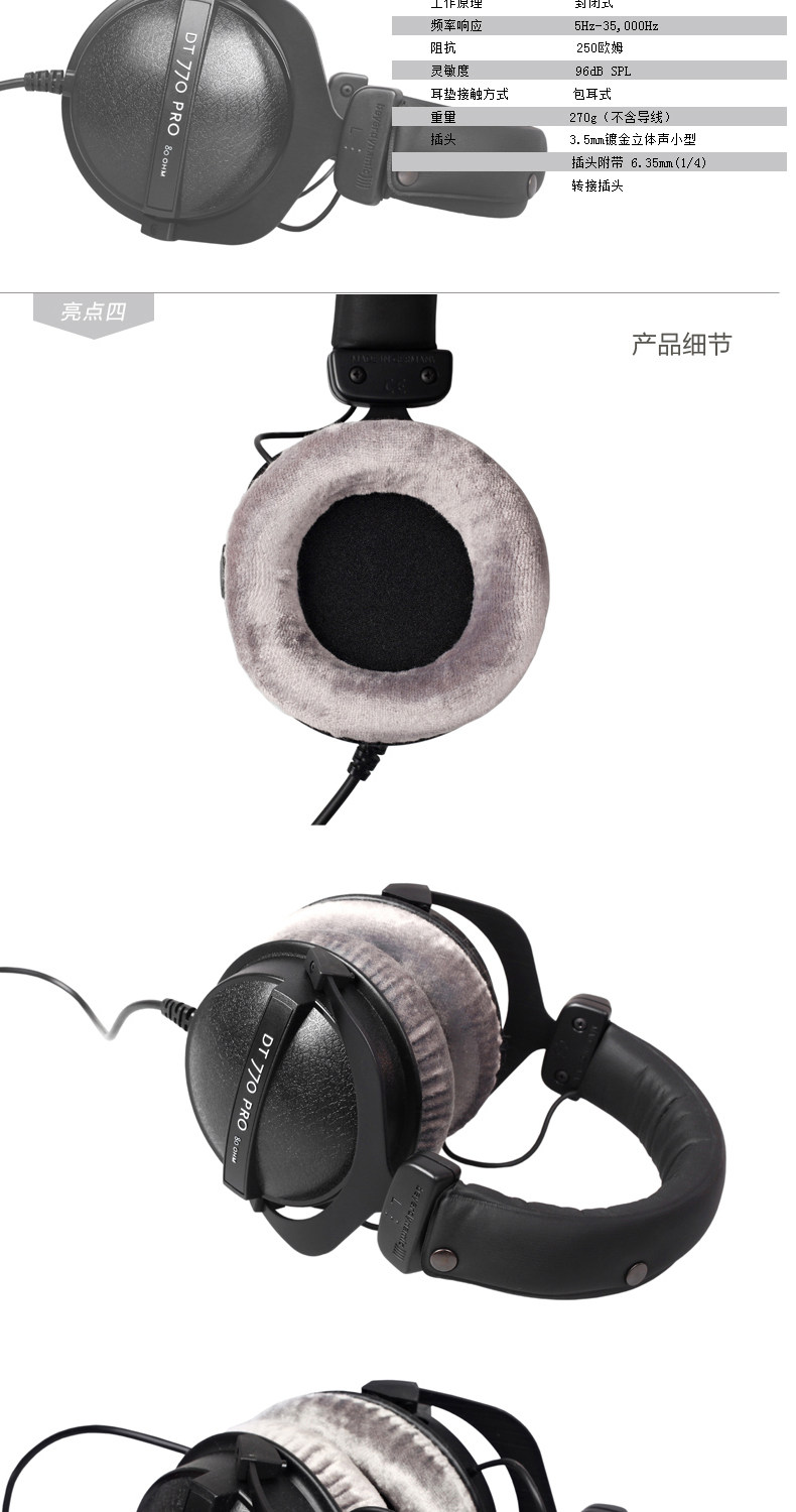 32欧耳罩位置为皮质,80和250欧为天鹅绒材质。