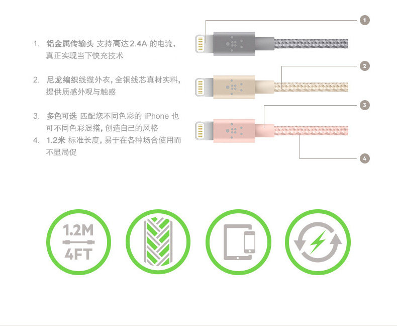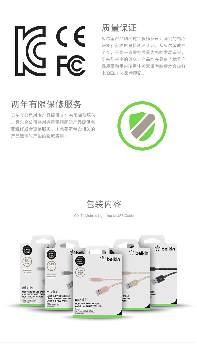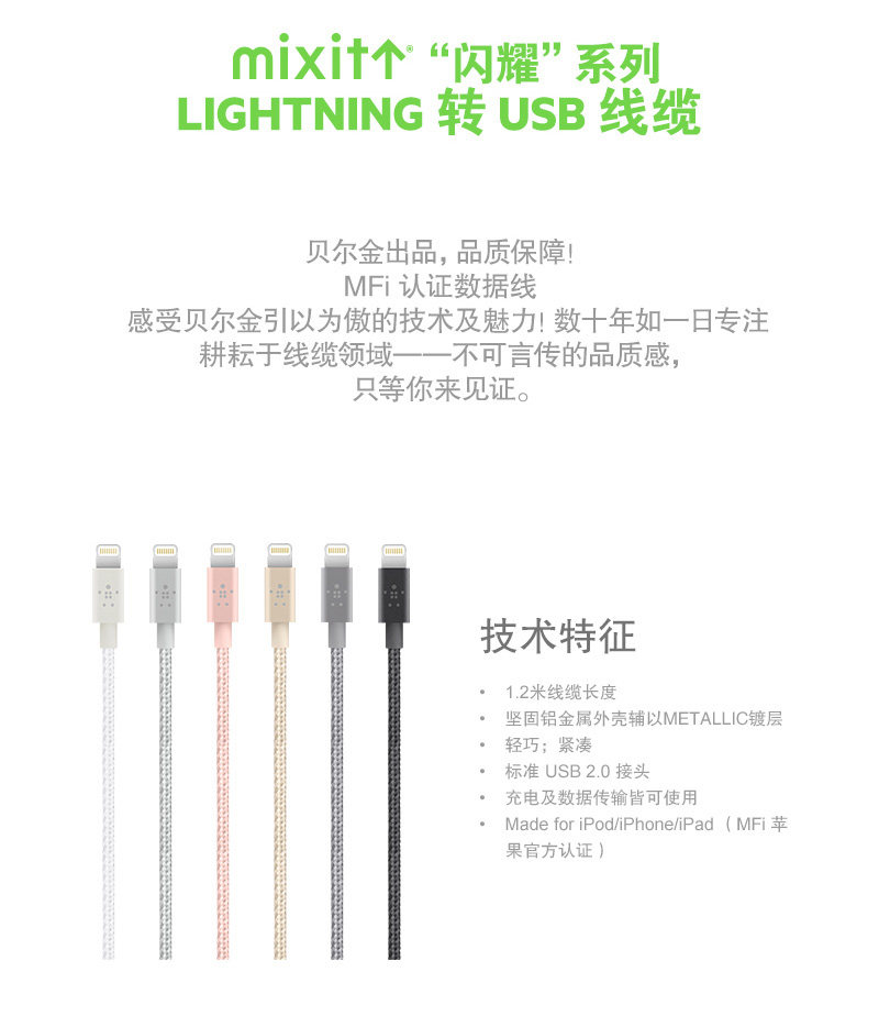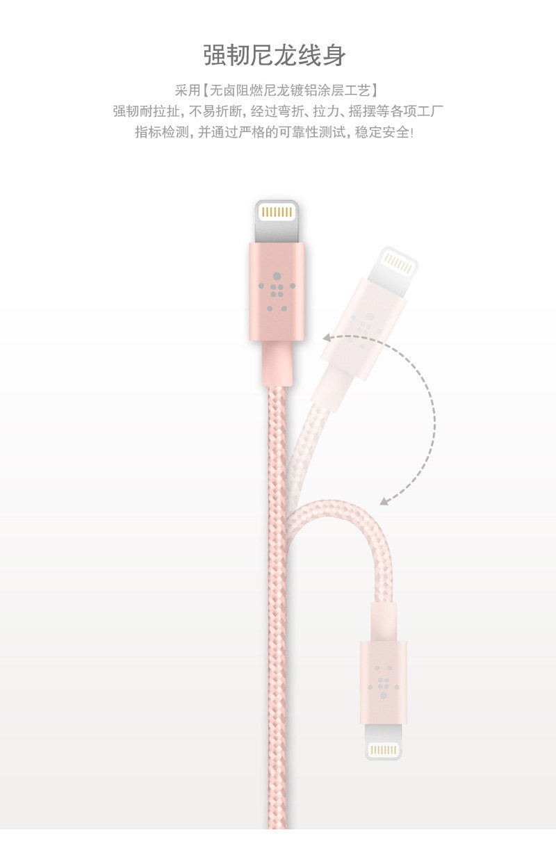 以下是Belkin贝尔金mfi认证苹果数据线iPhone8 X 7P快充数据线6s充电线的详细说明,厂家介绍,求购联系信息,最终解释权归贝尔金贸易(上海)有限公司所有