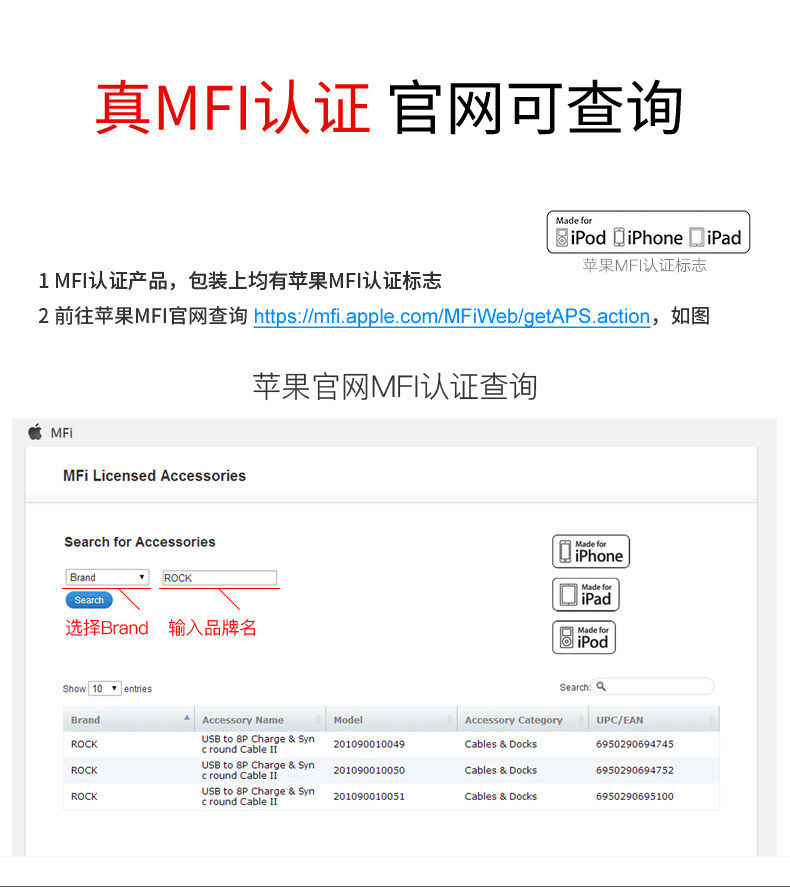 ROCK苹果数据线iPhone6手机7充电线6s器plus六5s加长2米ipad短8X