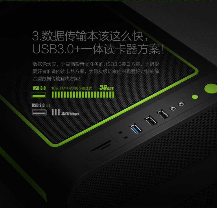 SAMA/先马影子战士 炫酷电脑机箱 双U3风扇调速器背线防尘设计