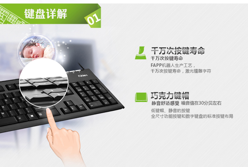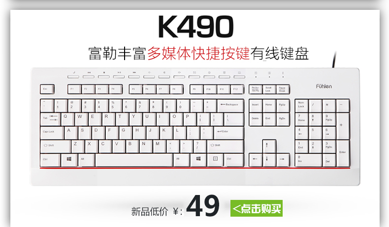 Fuhlen(富勒)作为键鼠市场,结实耐用,舒适价格低这些优势都让消费者多了一种新选择。Fuhlen(富勒)L400键盘出色的外观、潮流的纤薄设计、手感舒适静音的键盘、短键程按键、长按键寿命、激光镭雕技术,字符不易磨损,大键帽、防溅洒设计,办公,家庭用户不要错过这款键盘。