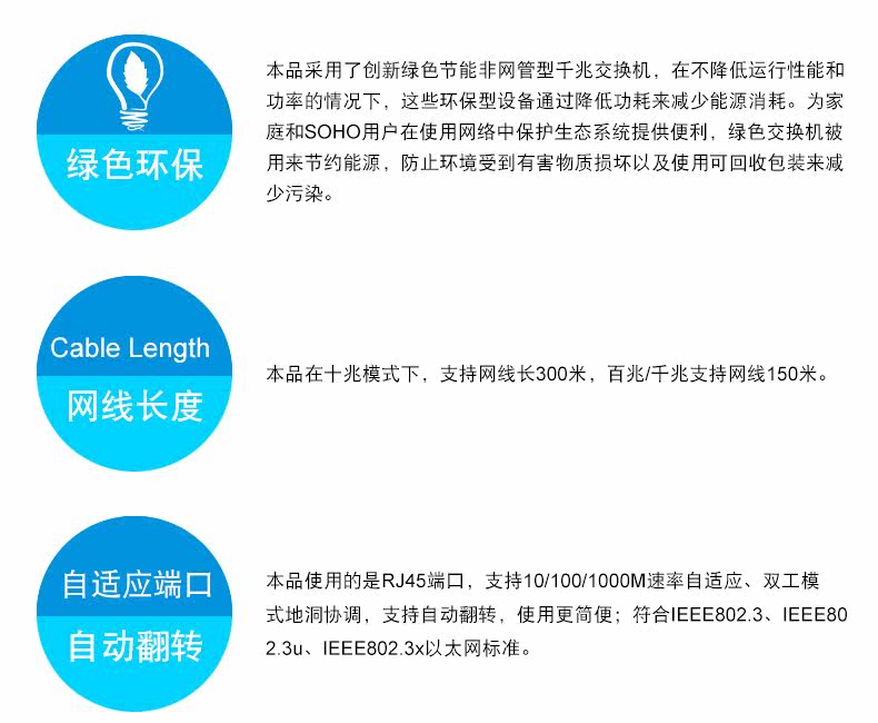 - 每个端口都支持Auto-MDI/MDIX功能;