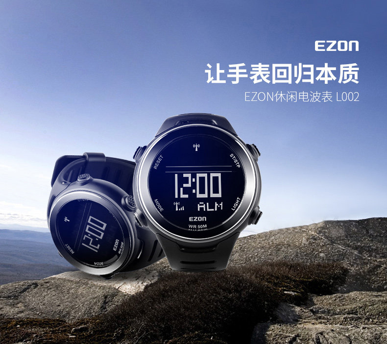 EZON宜准户外电子表跑步休闲计步防水男士多功能运动手表潮流男表