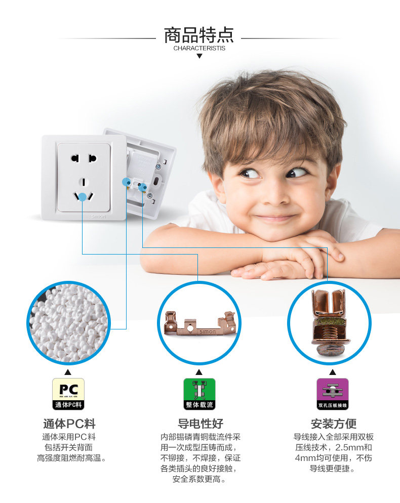 西蒙i7系列开关插座二三插五孔电源墙壁开关插座带边框白金灰