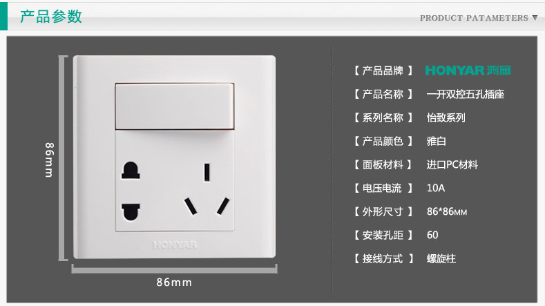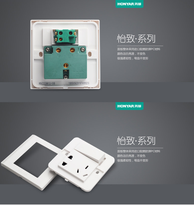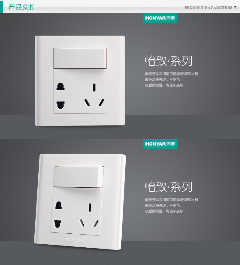 鸿雁开关插座插座面板开关面板墙壁开关一位双控带五孔一开五孔