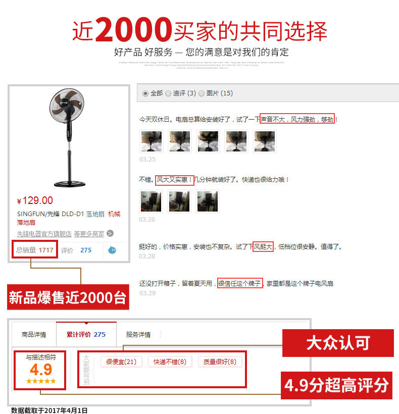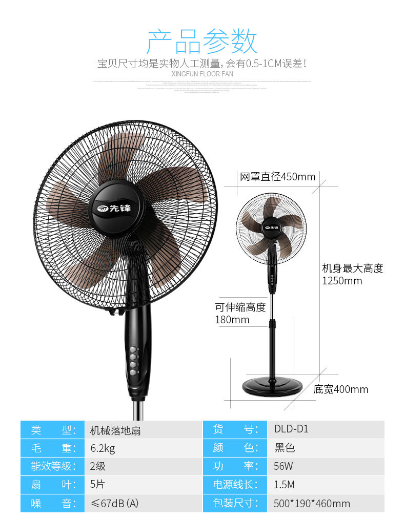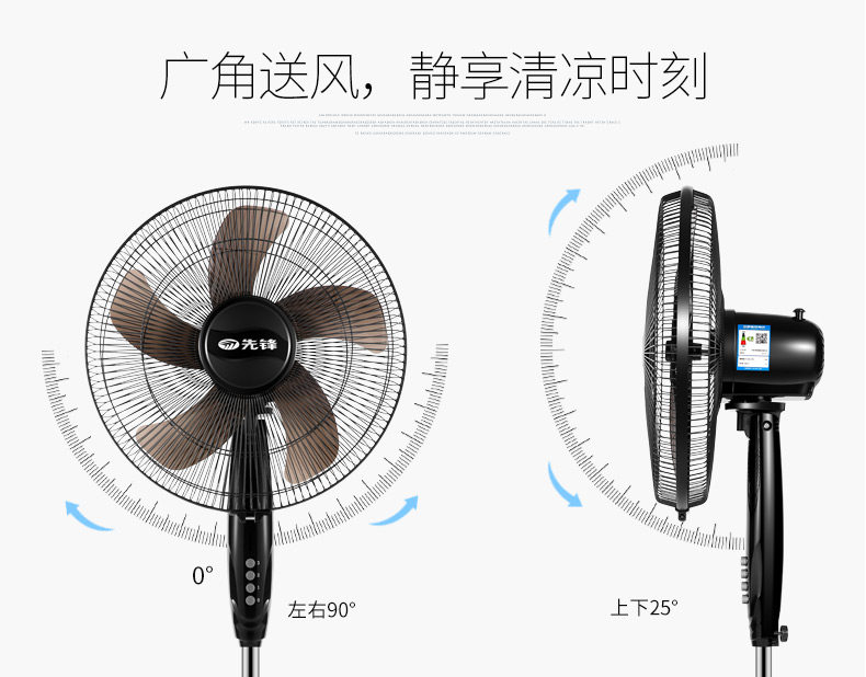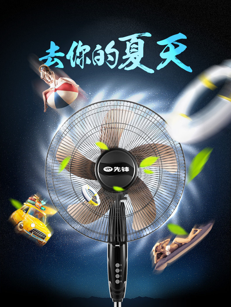 先锋电风扇 落地扇家用 立式风扇机械静音节能摇头定时台式电扇