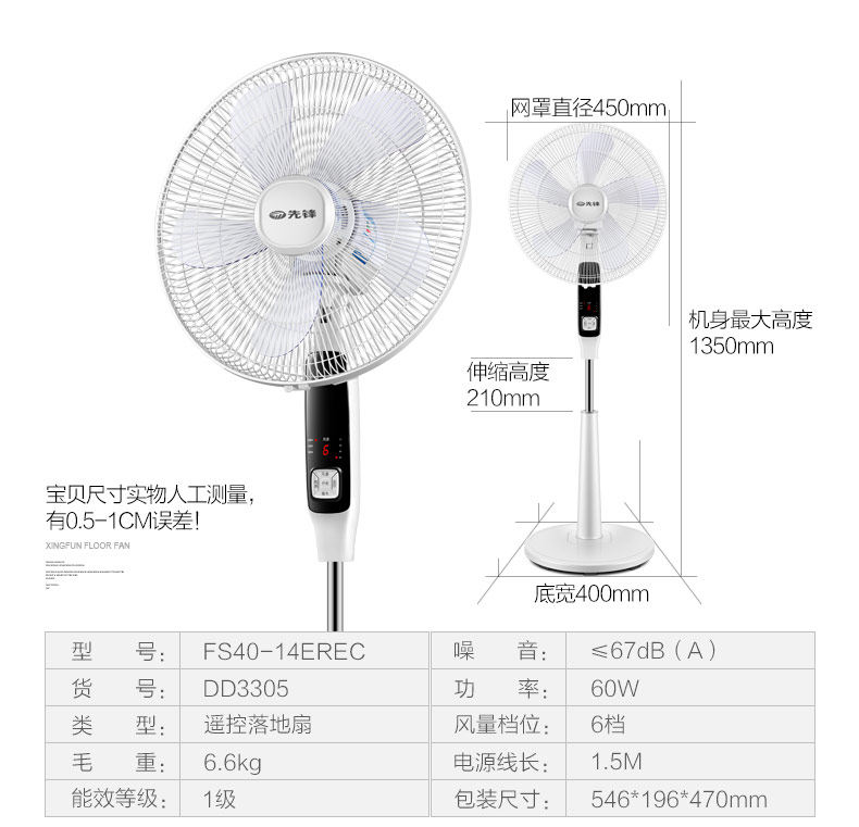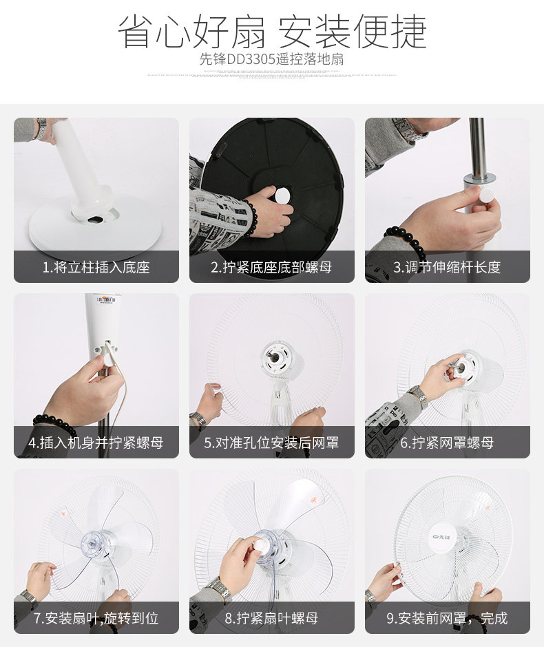 先锋电风扇 落地扇家用 立式风扇机械静音节能摇头定时台式电扇