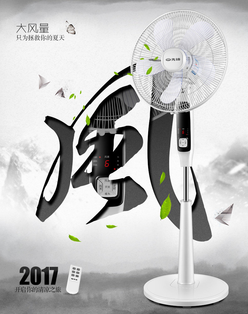 先锋电风扇 DD1312落地扇 风扇家用 风扇落地 遥控风扇 电扇