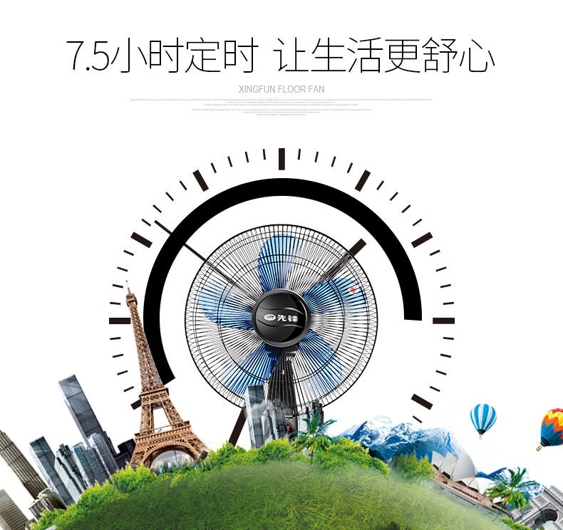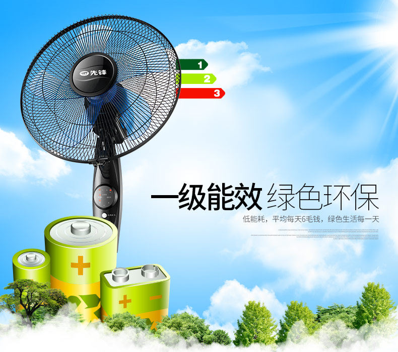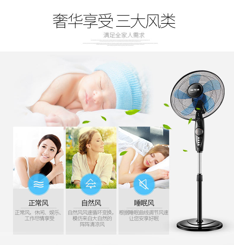 先锋电风扇 落地扇家用 立式风扇机械静音节能摇头定时台式电扇