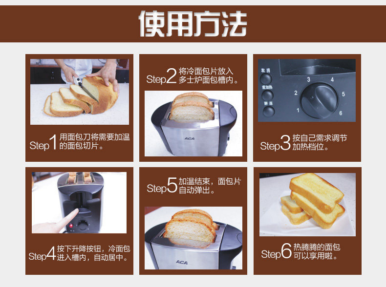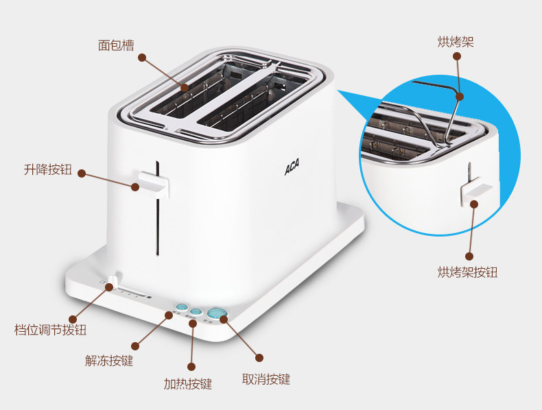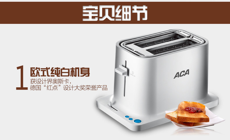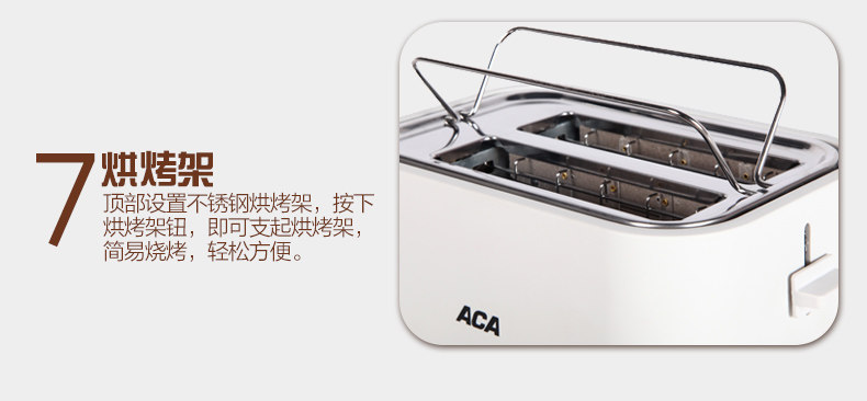 ACA/北美电器 AT-P0802C多士炉烤面包片 不锈钢宽槽 5档烧色