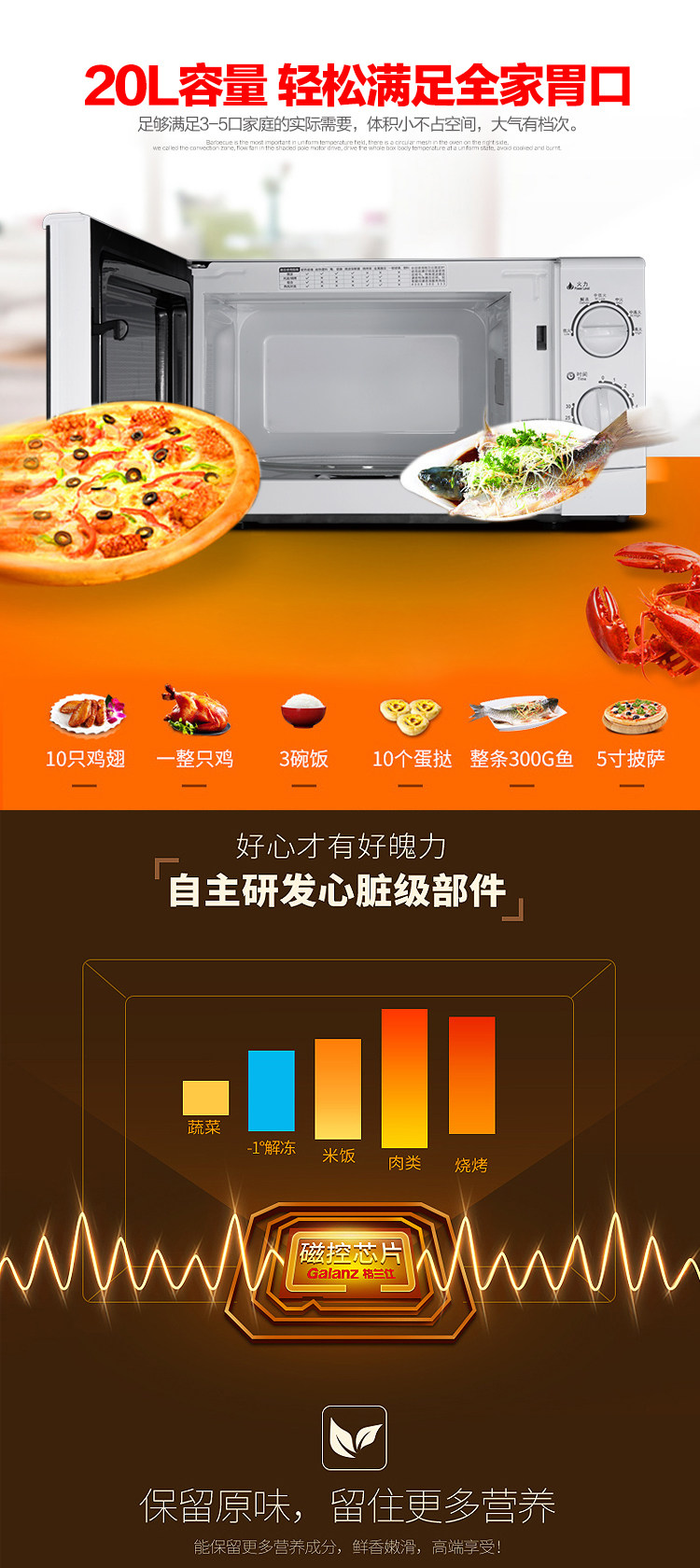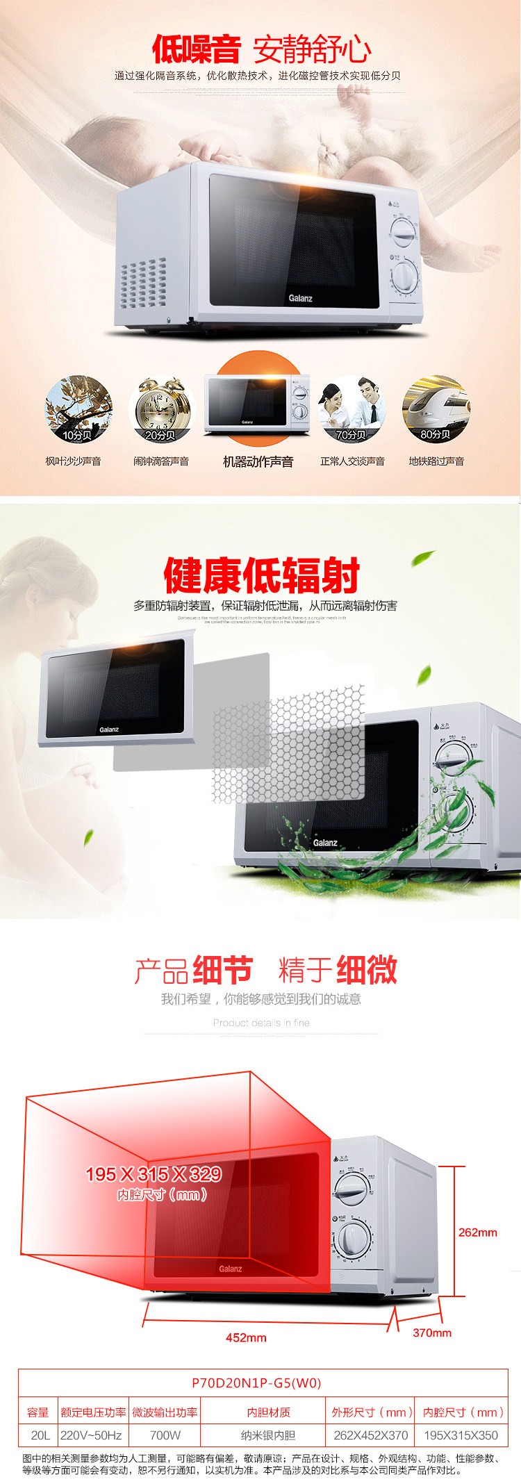 以下是格兰仕P70D20N1P-G5(W0) 转盘机械式家用微波炉20L的详细说明,厂家介绍,求购联系信息,最终解释权归广东格兰仕集团有限公司所有