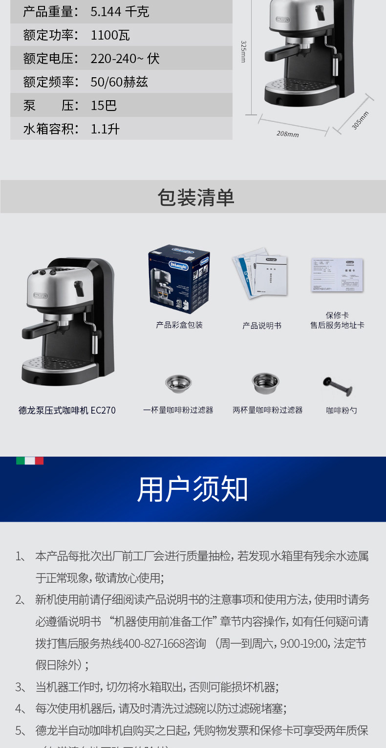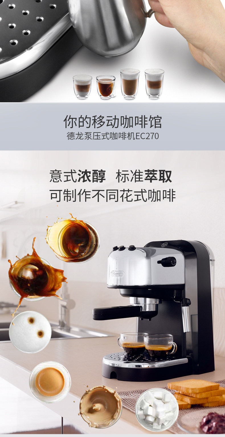 Delonghi/德龙 EC680意式家用半自动咖啡机金属不锈钢咖啡机