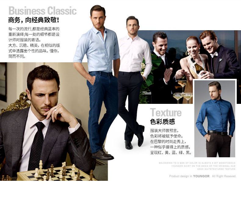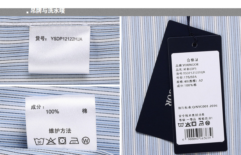 Youngor/雅戈尔秋季男全棉衬衫商务休闲修身长袖绒面衬衫4C20