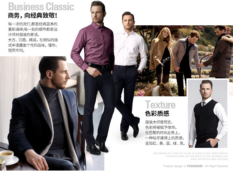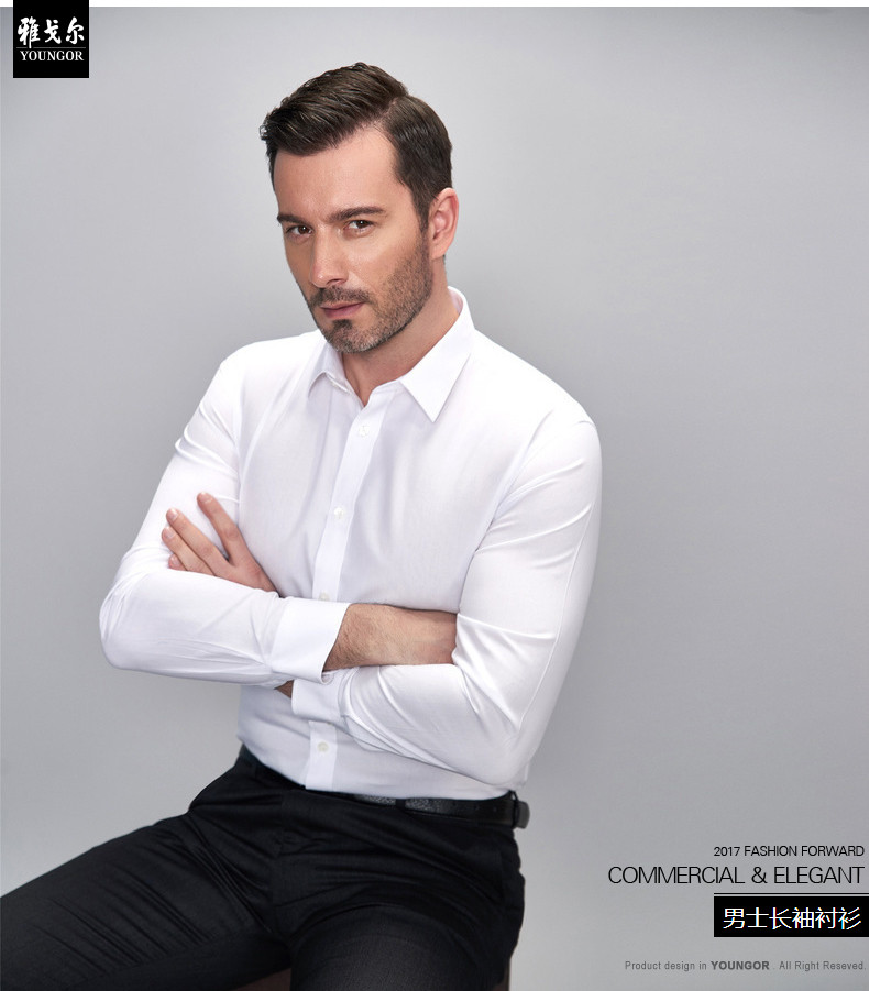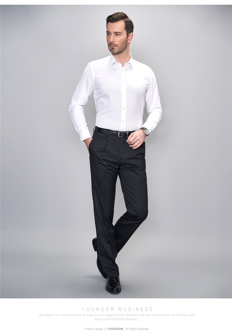 Youngor/雅戈尔秋季男全棉衬衫商务休闲修身长袖绒面衬衫4C20