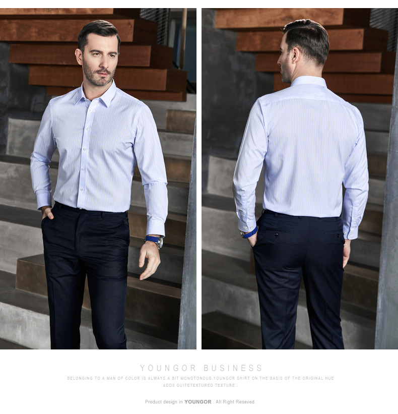 Youngor/雅戈尔秋季男全棉衬衫商务休闲修身长袖绒面衬衫4C20