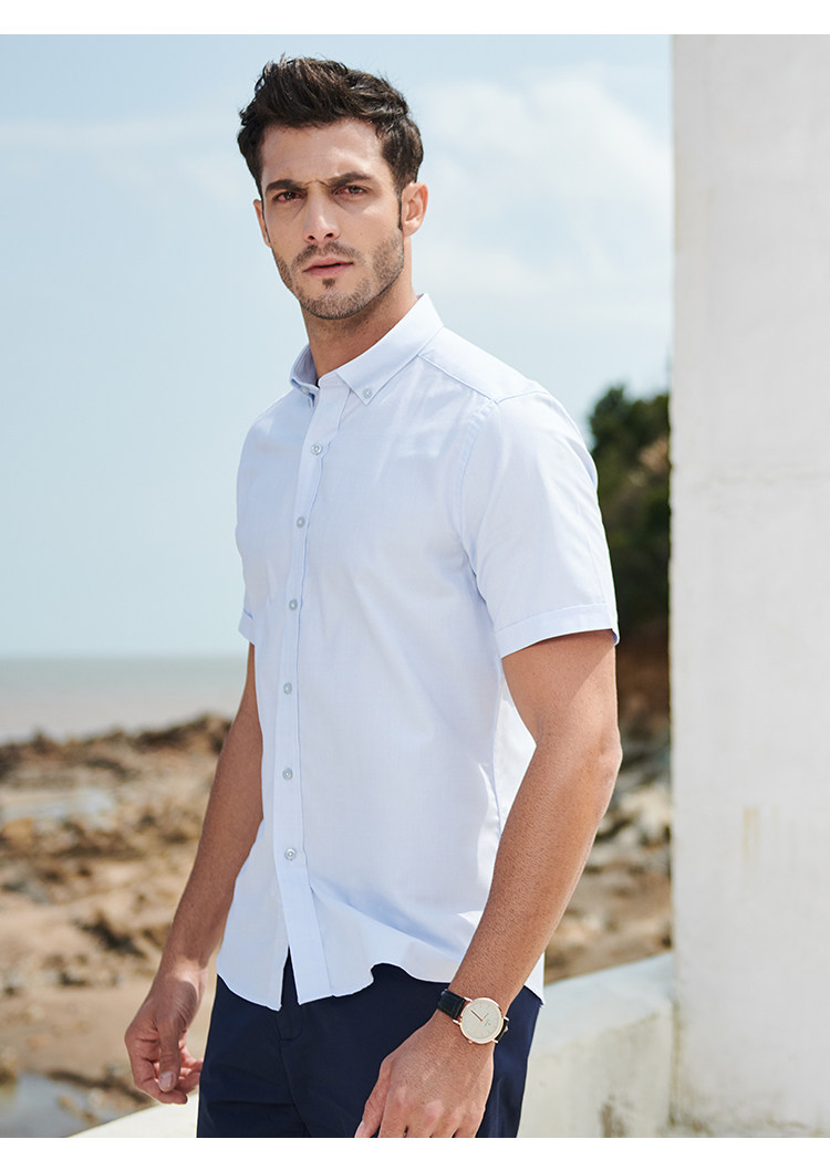 GFirs/杉杉春季新品男纯色商务休闲长袖衬衫男韩版修身衬衣
