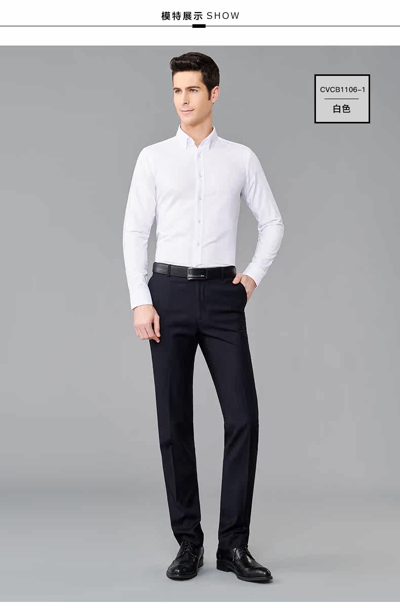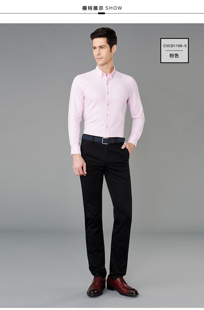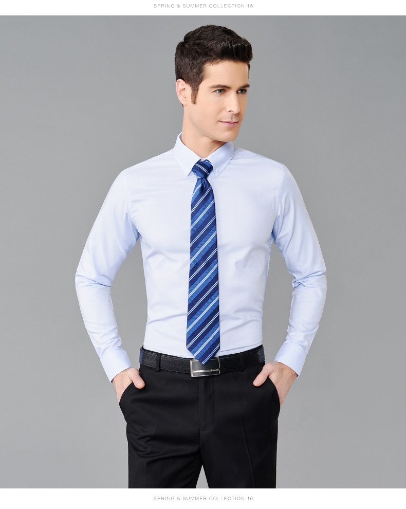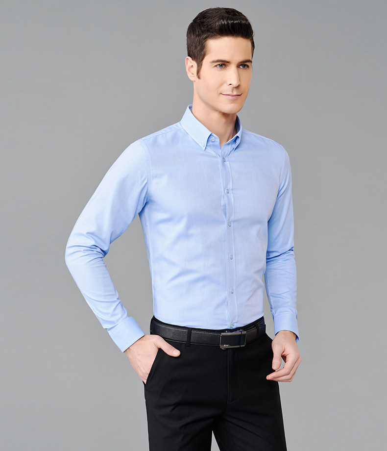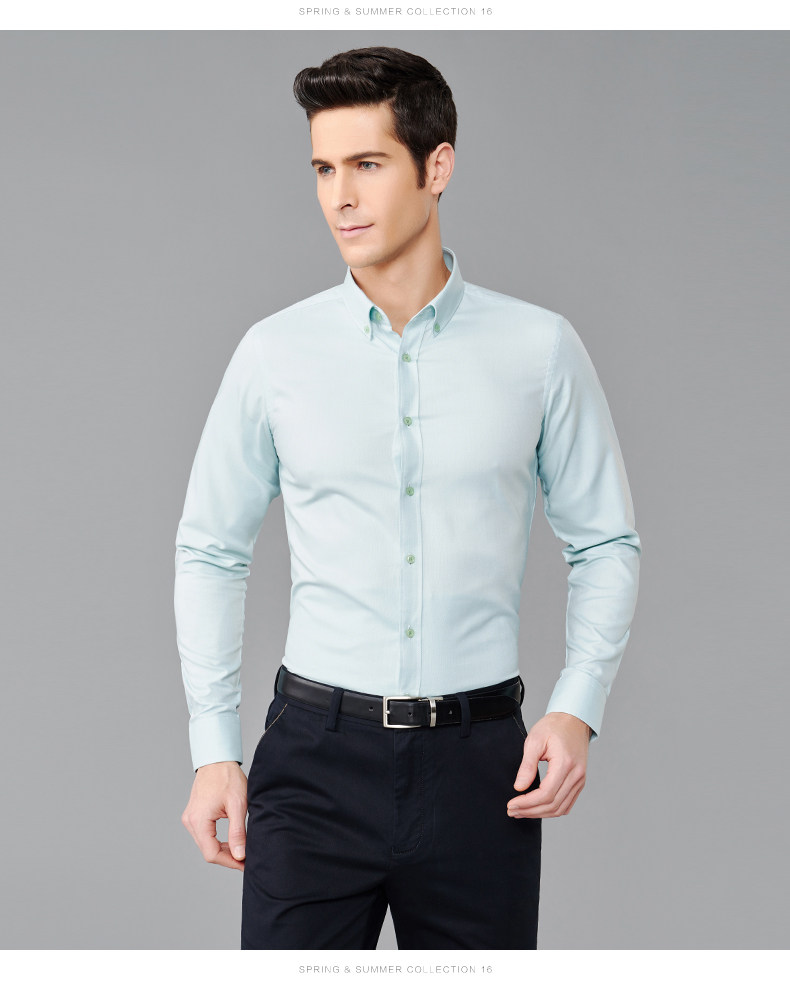 GFirs/杉杉春季新品男纯色商务休闲长袖衬衫男韩版修身衬衣