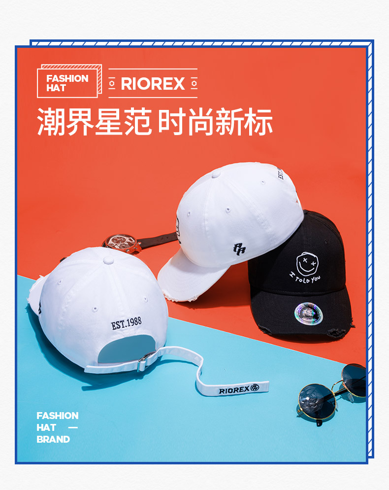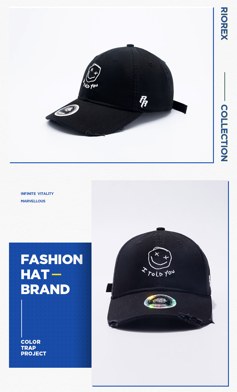 RIOREX棒球帽女男士弯檐帽潮牌鸭舌帽女嘻哈帽长飘带铁环情侣帽子