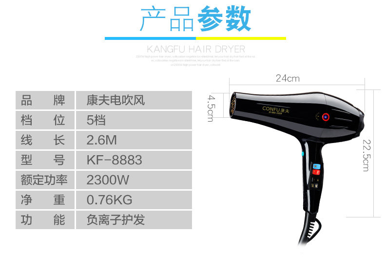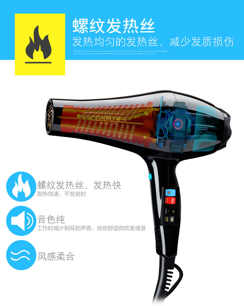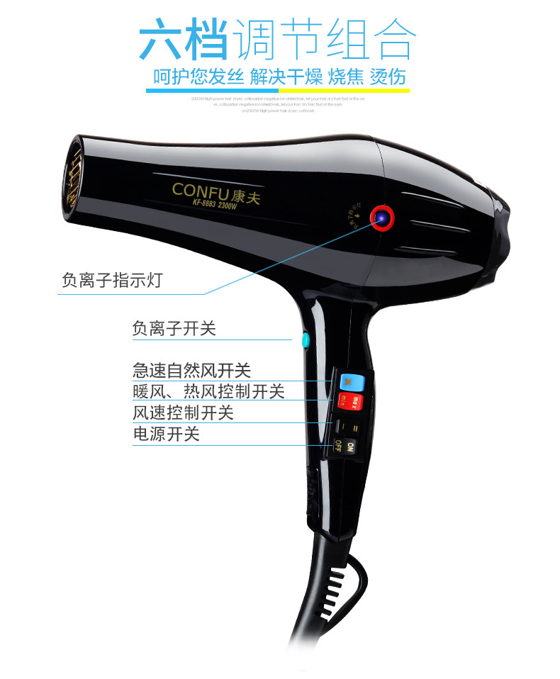 康夫KF-8883大功率吹风机负离子电吹风冷热风静音发廊专业吹风筒