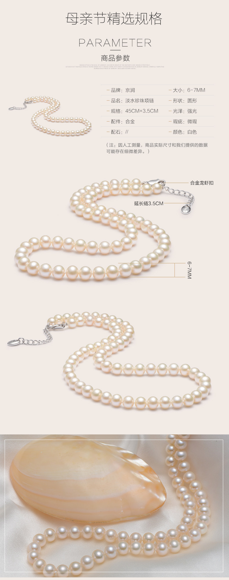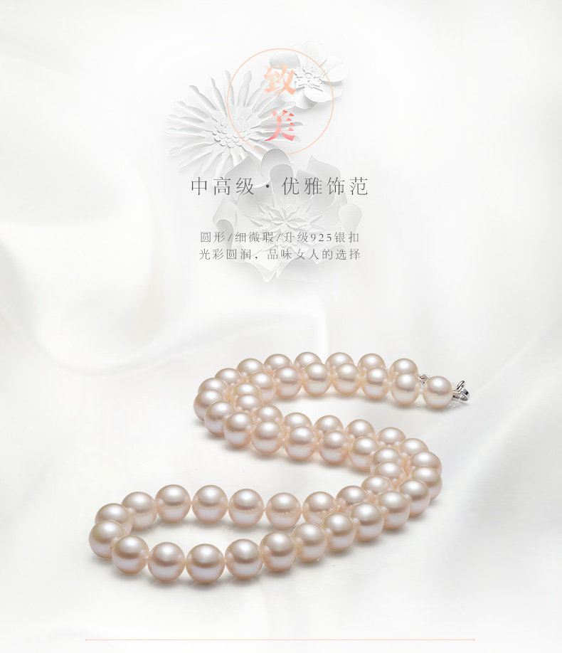 京润致美圆形强光细微瑕S925银镶白色淡水珍珠项链妈妈520礼物