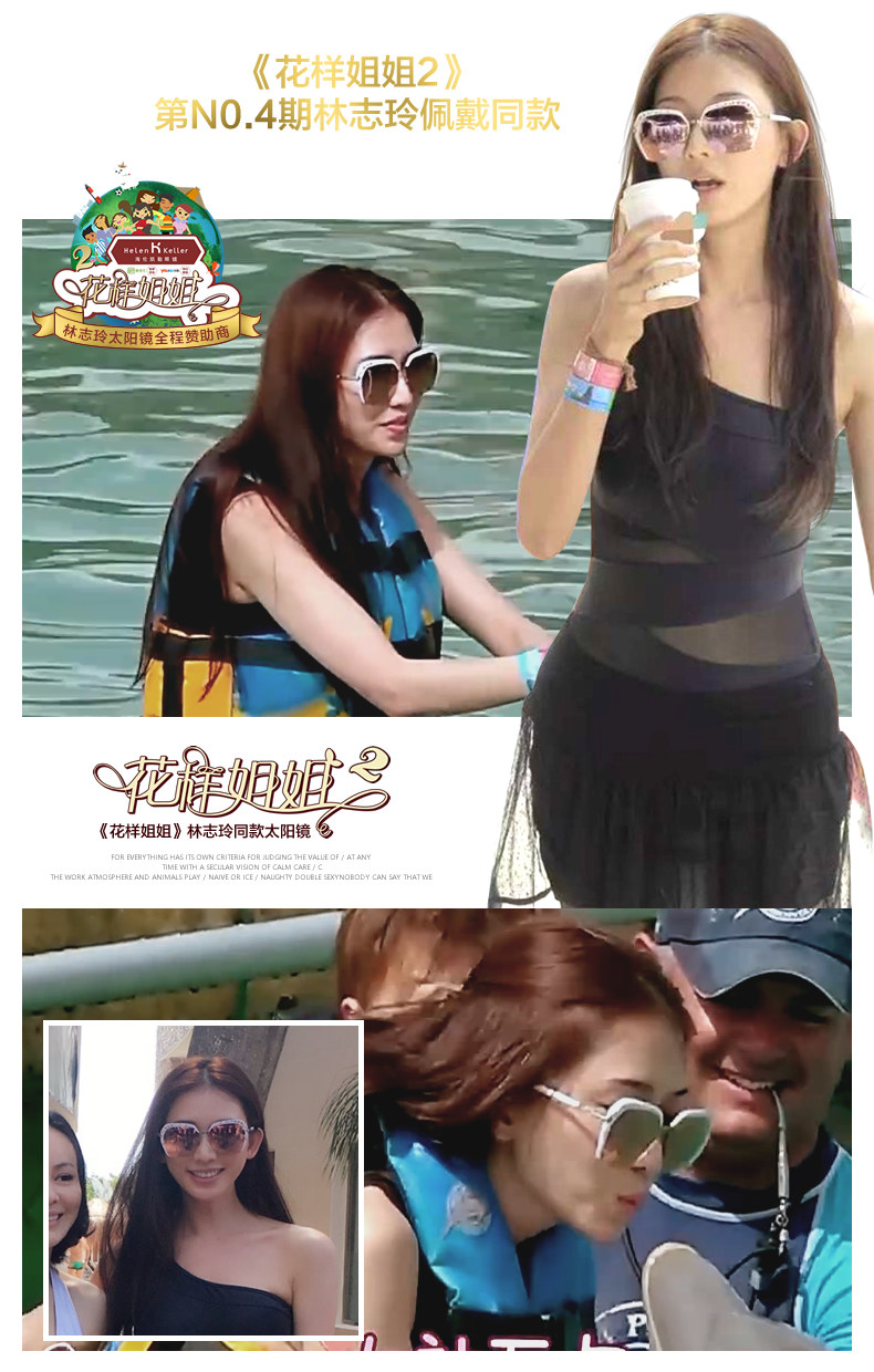 林志玲同款 海伦凯勒太阳镜女 偏光太阳镜女款防紫外大框墨镜8232