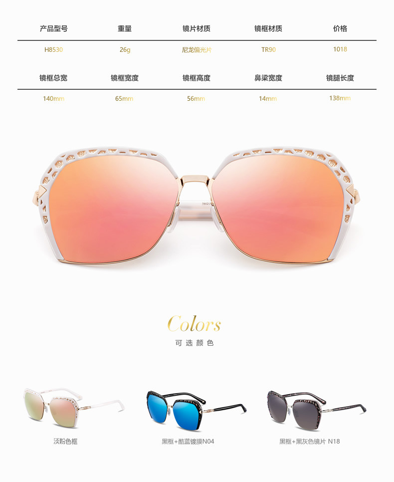 海伦凯勒太阳镜女 墨镜偏光开车司机镜 炫酷镀膜 脱跳动感H8331