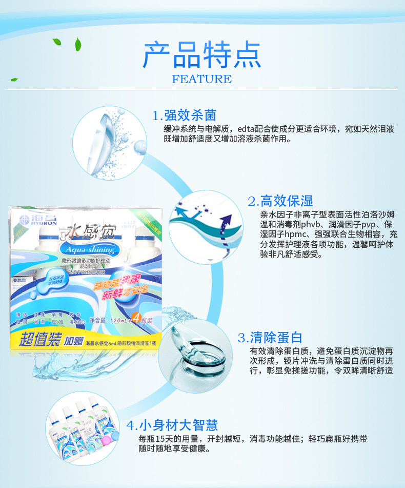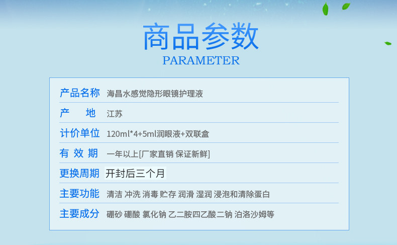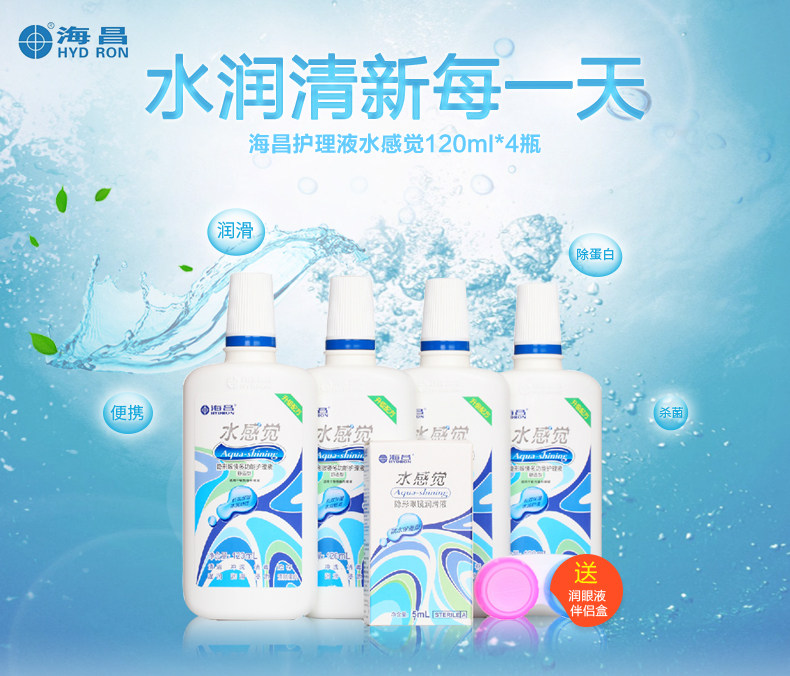 送3礼含润眼液海昌隐形近视眼镜护理液120ml*4水感觉美瞳清洗药水
