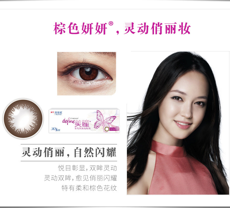 强生安视优旗舰店 棕色妍妍美瞳超薄透气 6片双周抛隐形近视眼镜