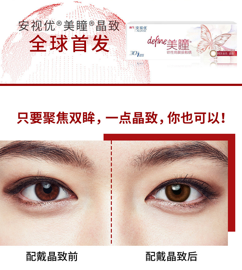 强生安视优旗舰店 美瞳日抛带度数30片装 近视眼镜彩色隐形眼境