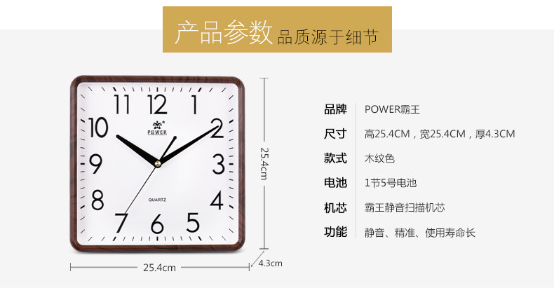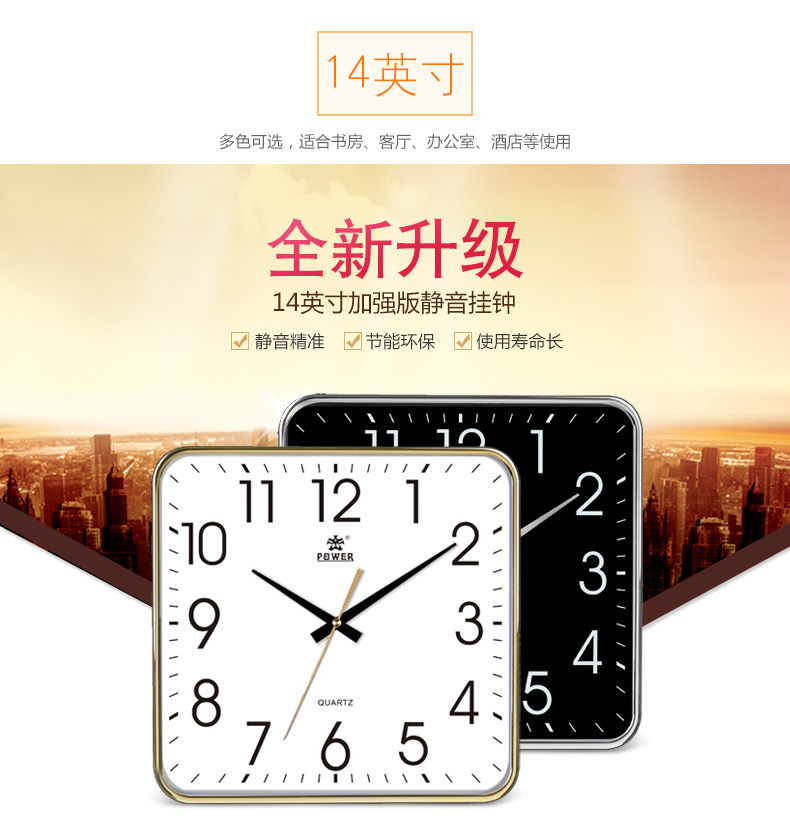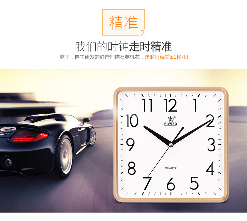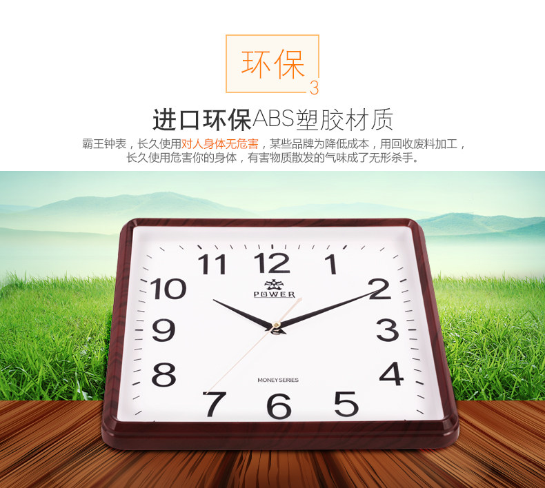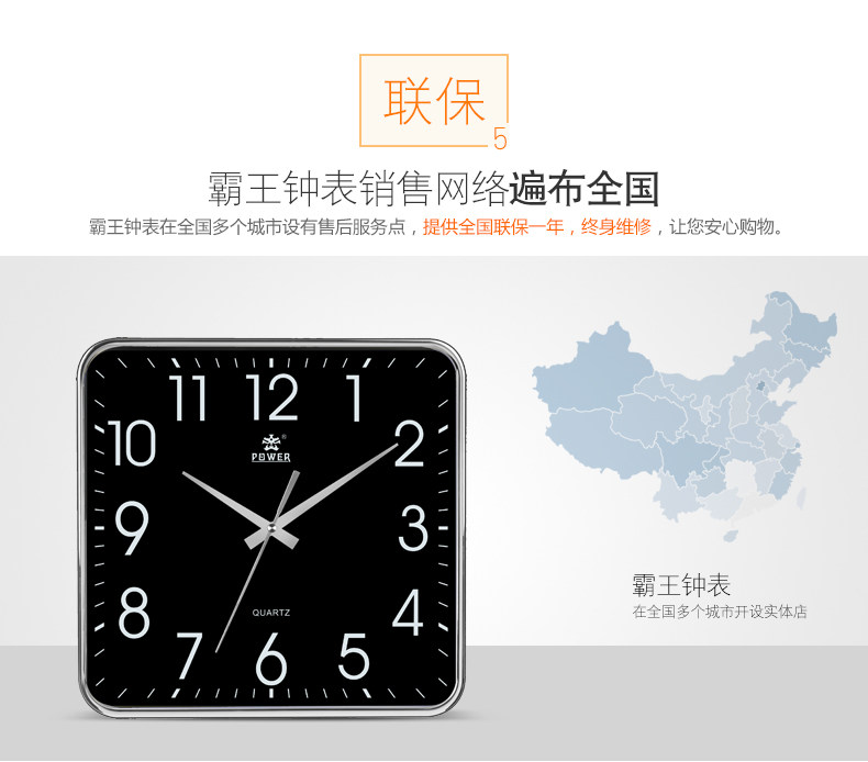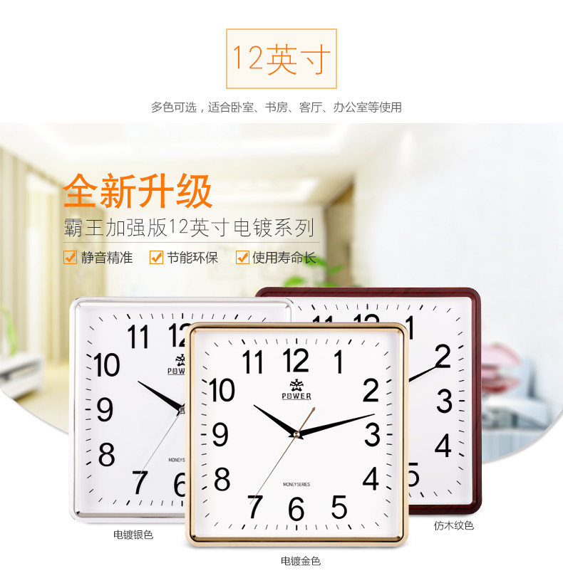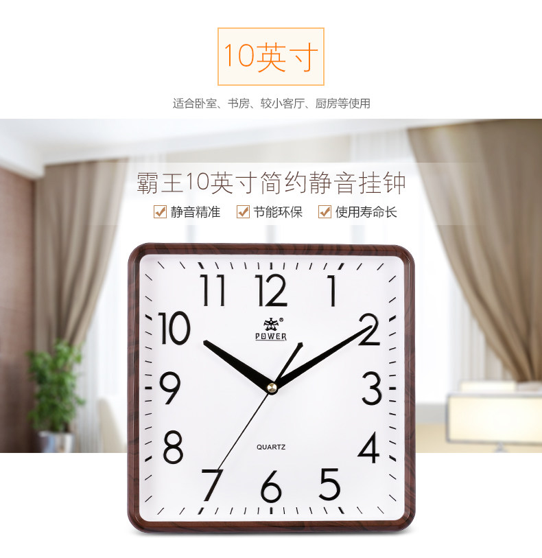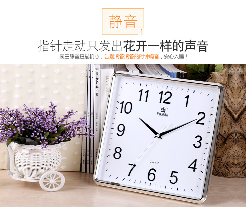 霸王钟表现代客厅方形大挂钟时尚创意中式挂表静音时钟电子石英钟