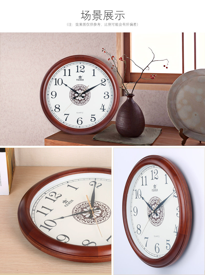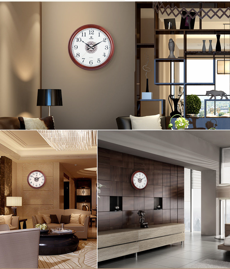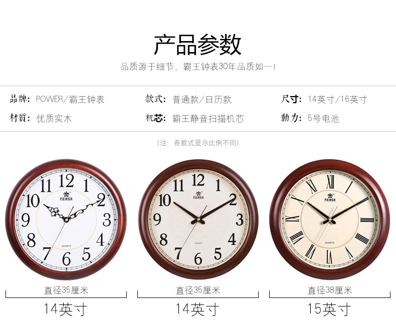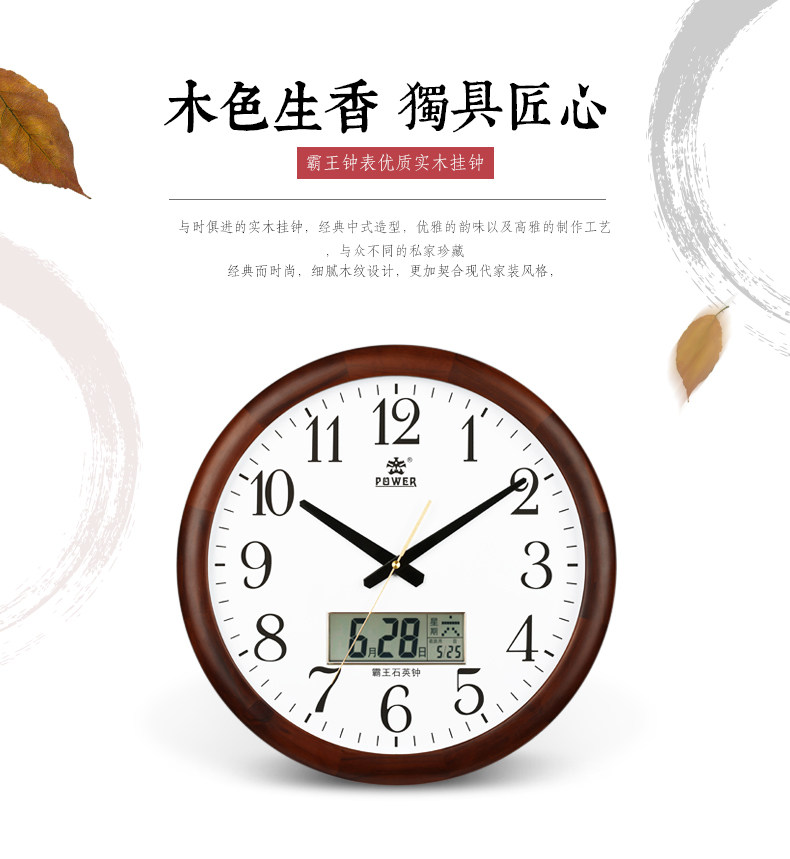 霸王钟表实木挂钟客厅中国风创意电子静音挂表欧式大壁钟石英时钟