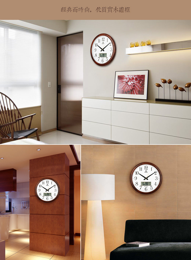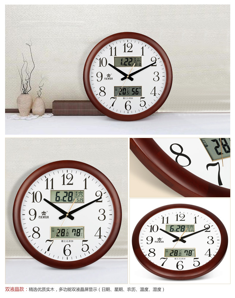霸王钟表现代客厅挂钟时尚夜光挂表简约静音万年历时钟创意石英钟