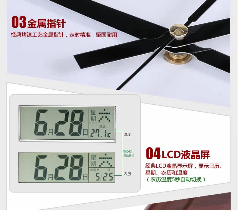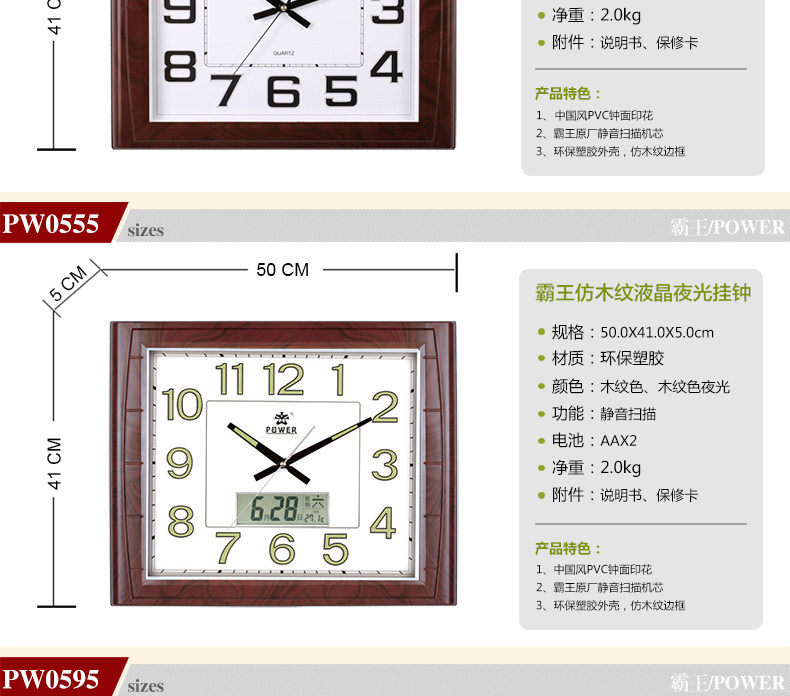 霸王钟表现代客厅挂钟时尚夜光挂表简约静音万年历时钟创意石英钟