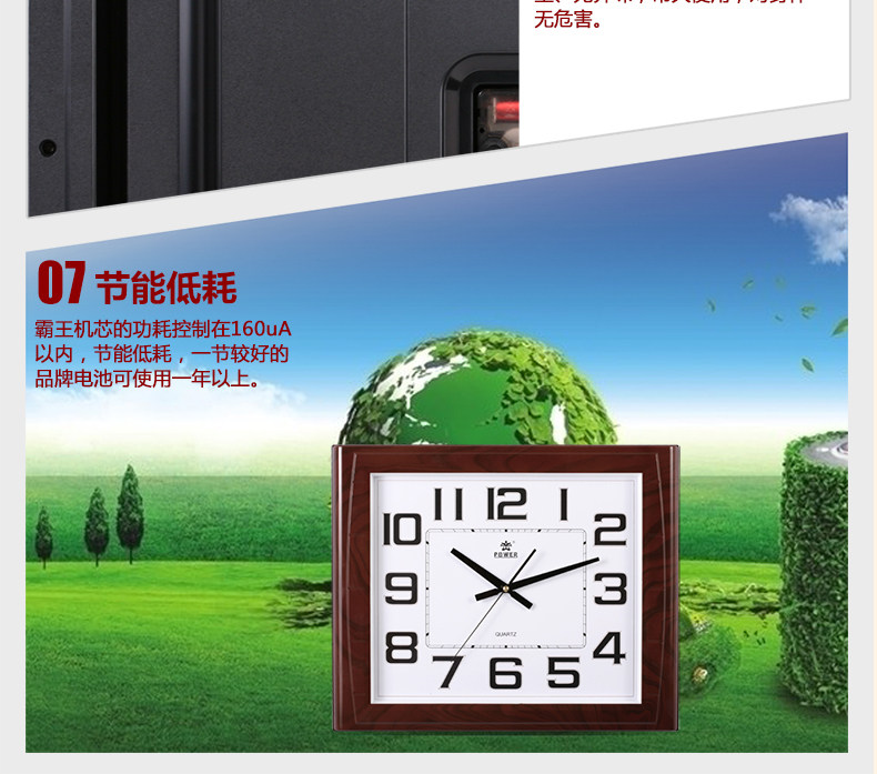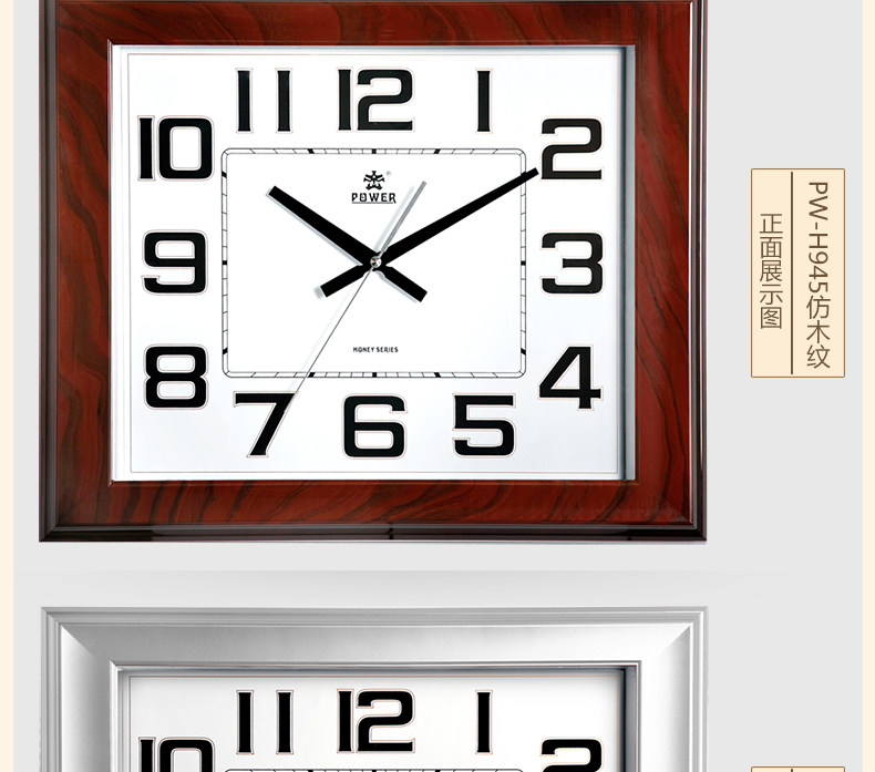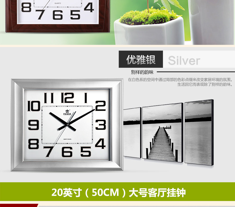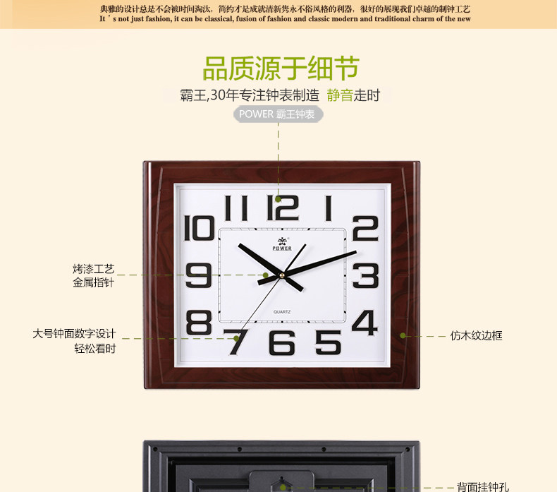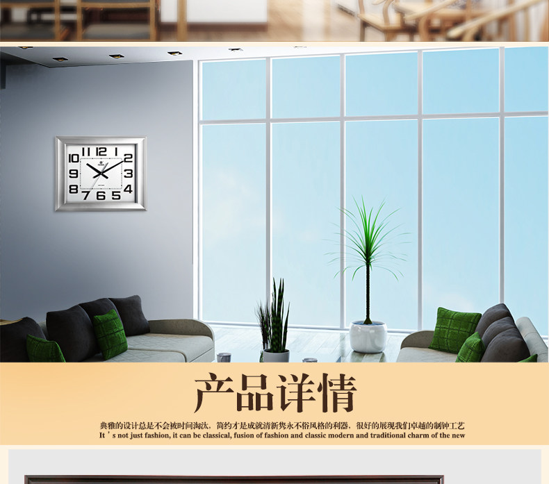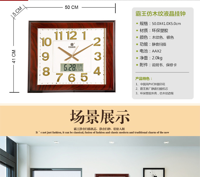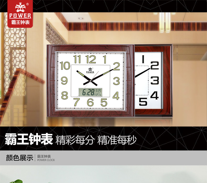 霸王钟表现代客厅方形大挂钟时尚创意中式挂表静音时钟电子石英钟