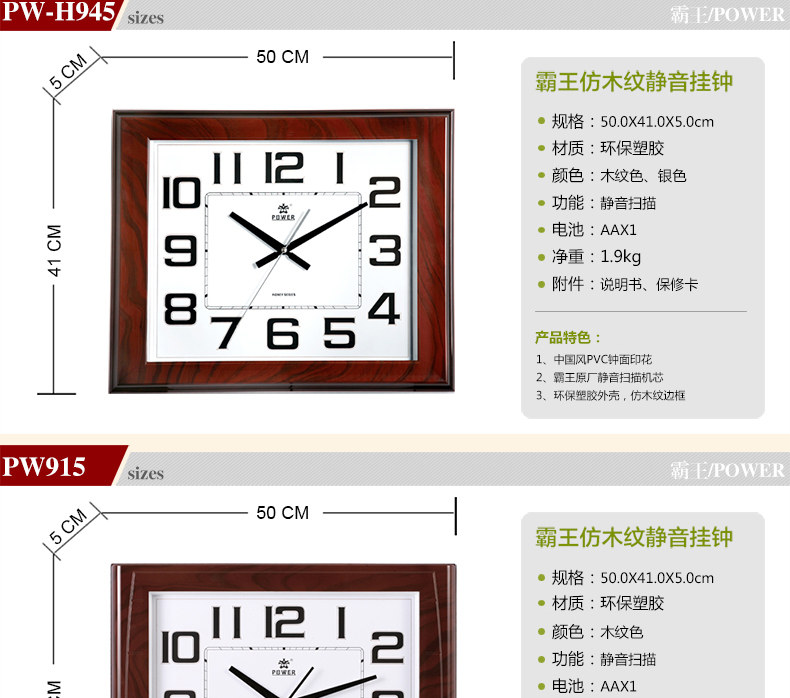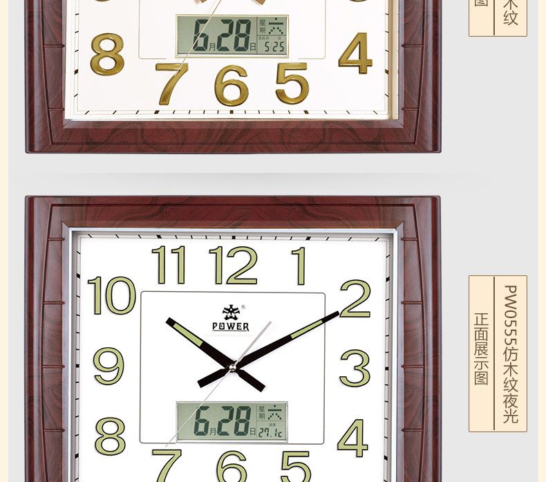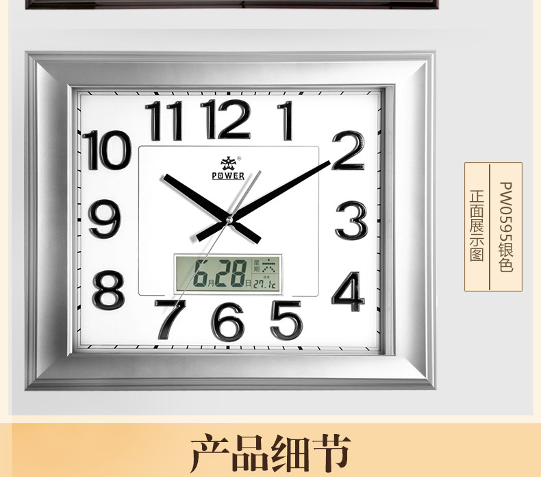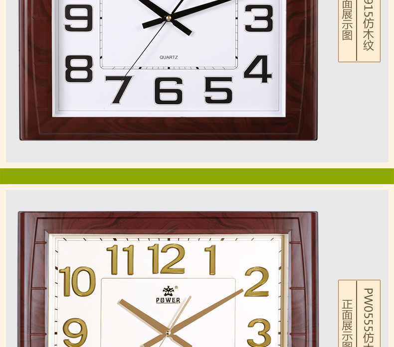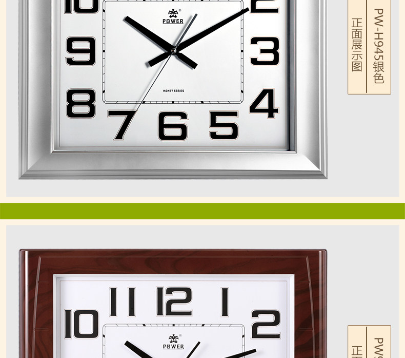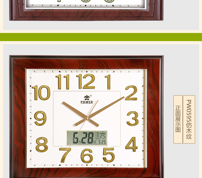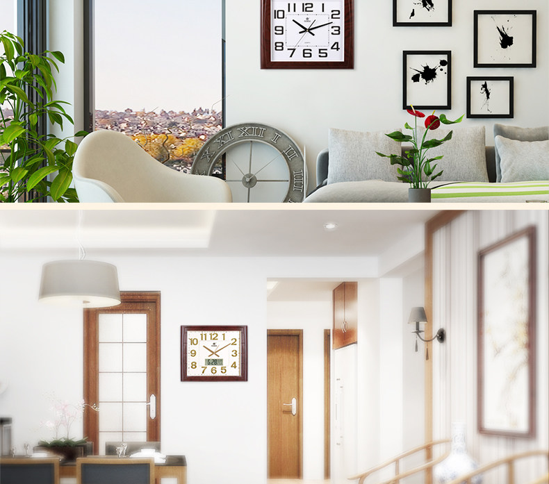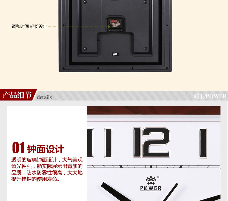 霸王钟表现代客厅方形大挂钟时尚创意中式挂表静音时钟电子石英钟
