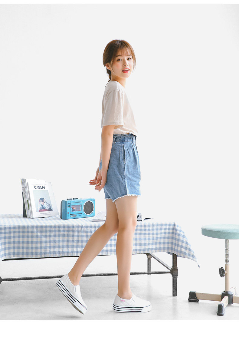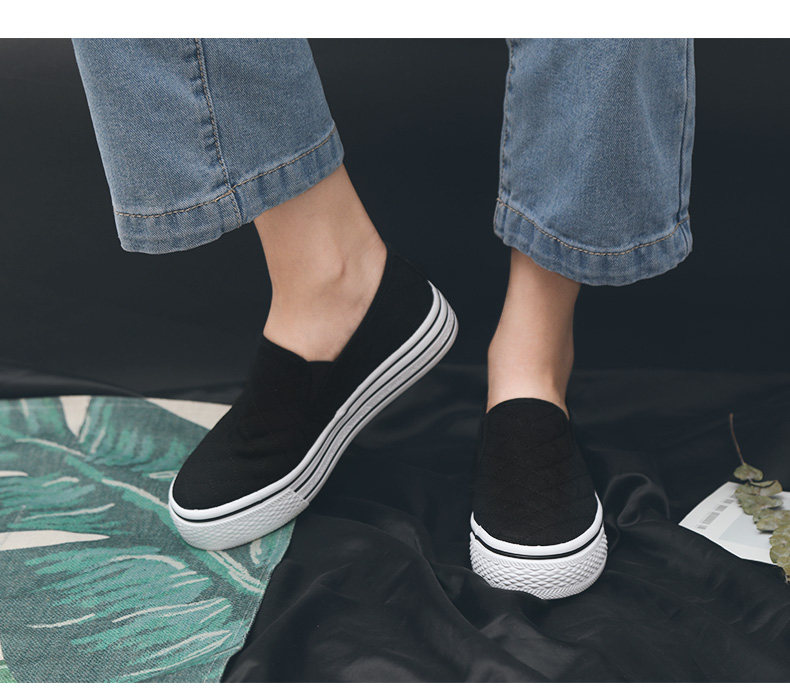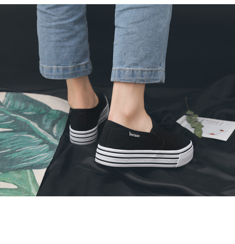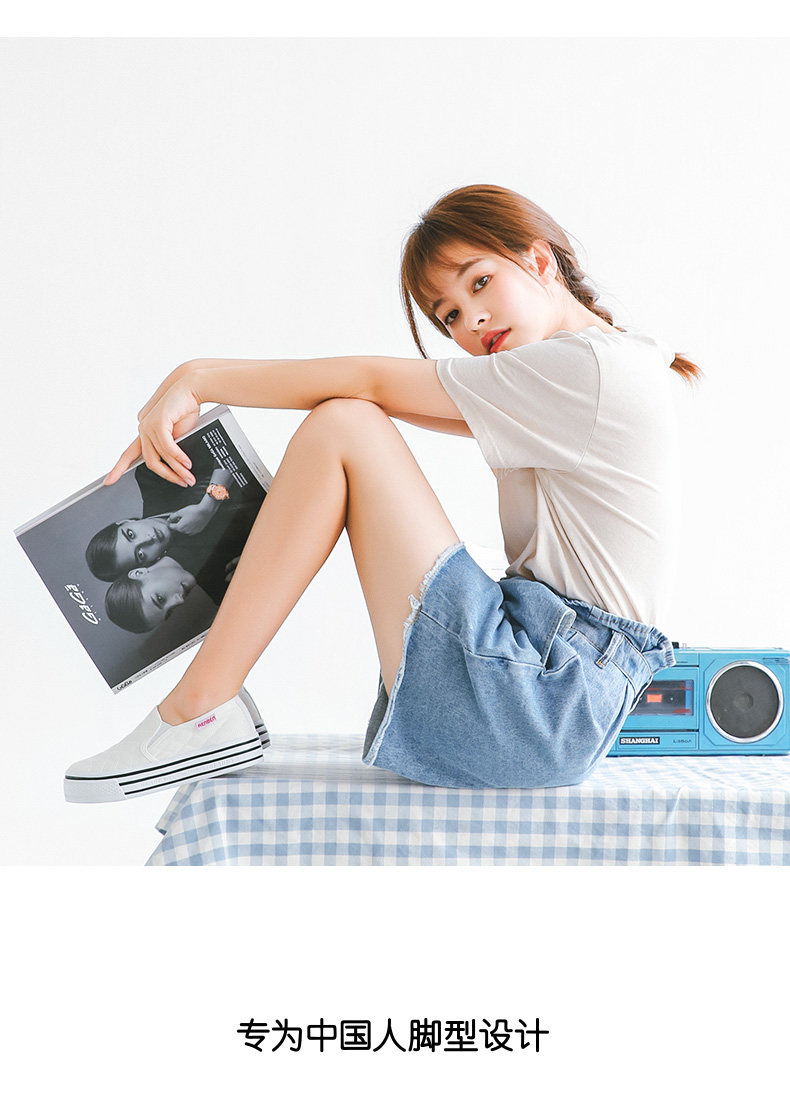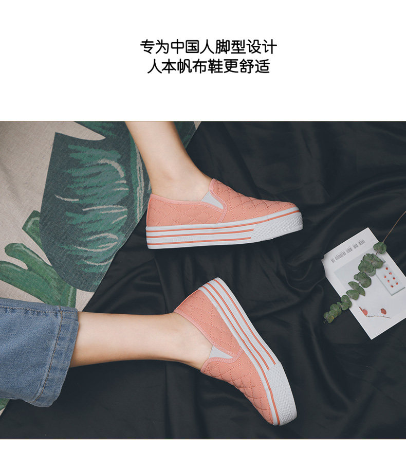 人本帆布鞋女厚底布鞋松糕跟小白鞋牛仔休闲鞋女百搭学生1992鞋子