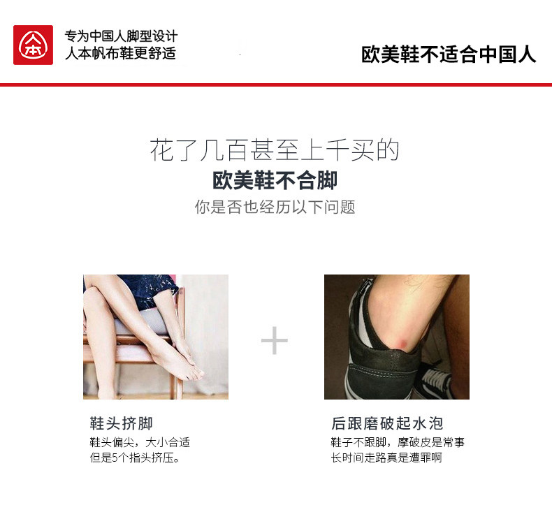 人本帆布鞋女韩版白色平底板鞋经典高帮情侣学生鞋系带运动女鞋子