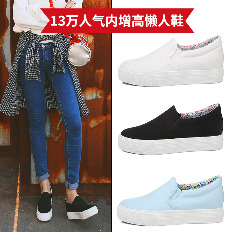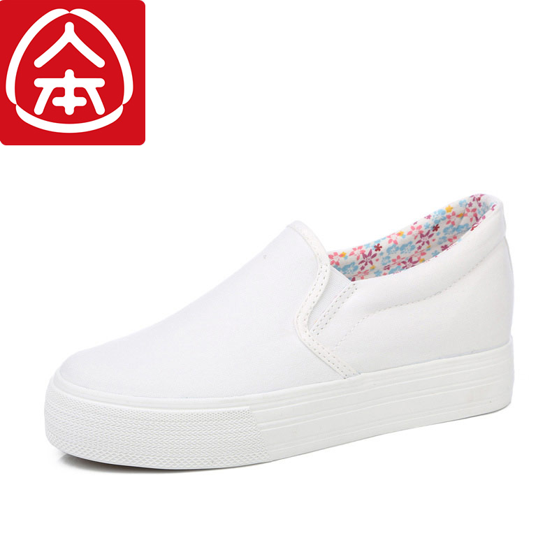 人本帆布鞋女厚底布鞋松糕跟小白鞋牛仔休闲鞋女百搭学生1992鞋子