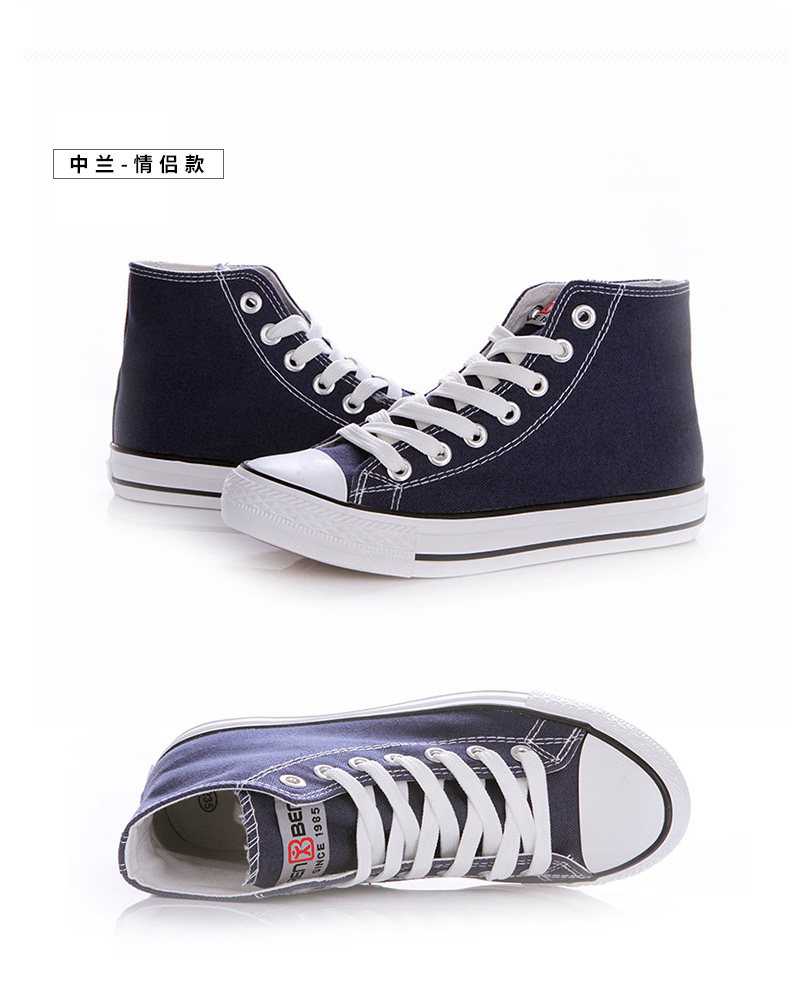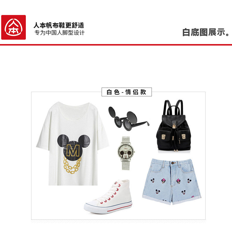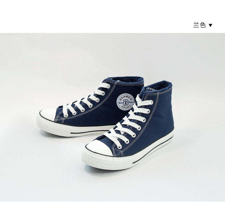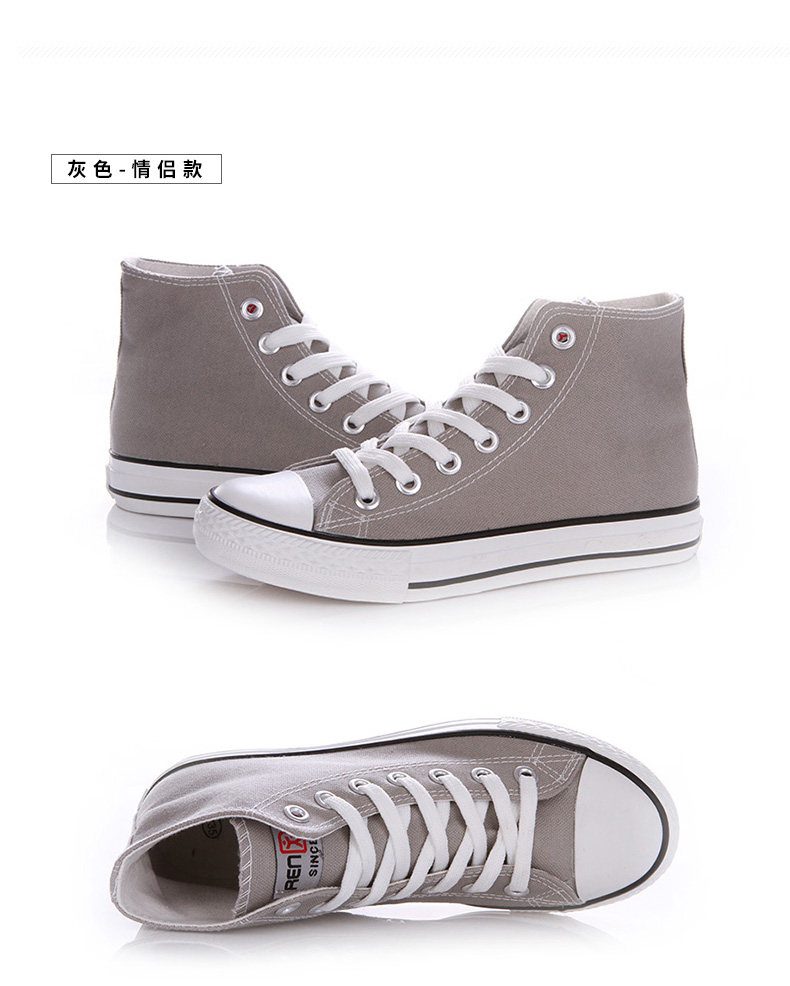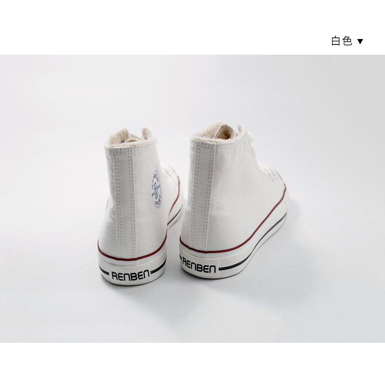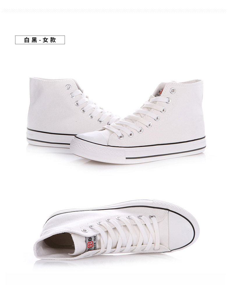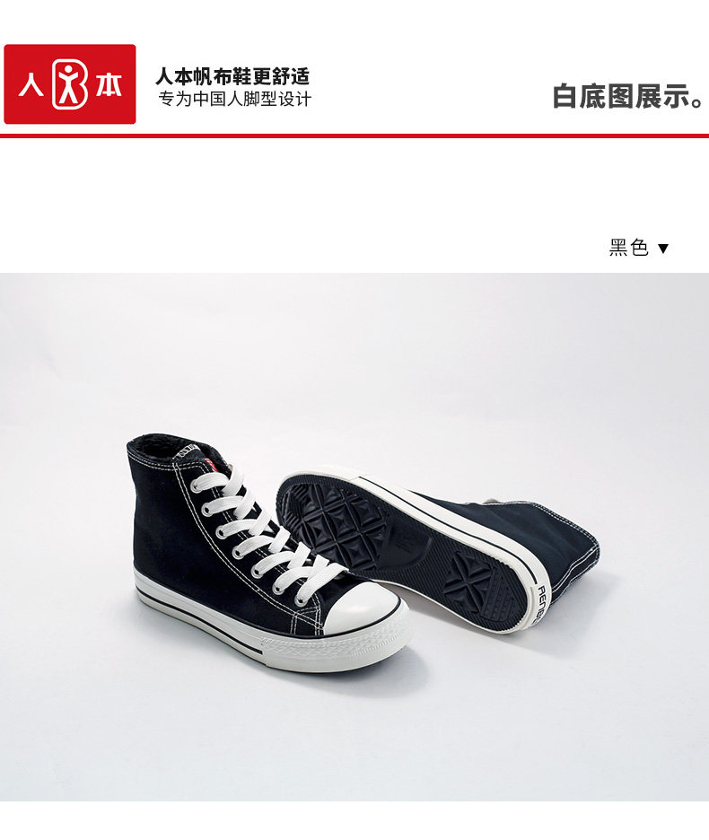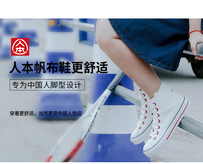 人本帆布鞋女韩版白色平底板鞋经典高帮情侣学生鞋系带运动女鞋子