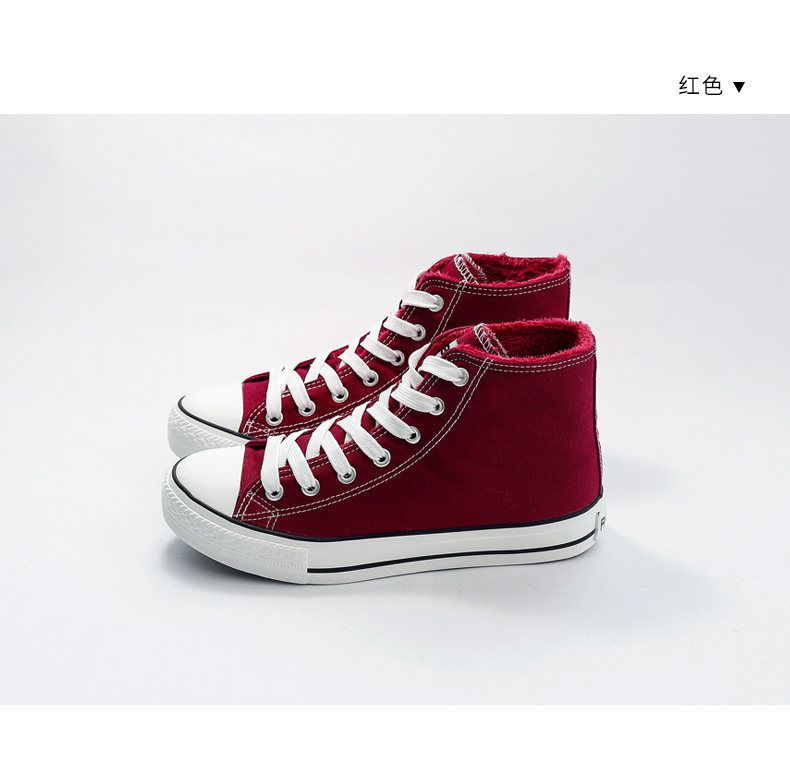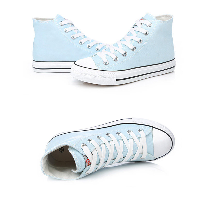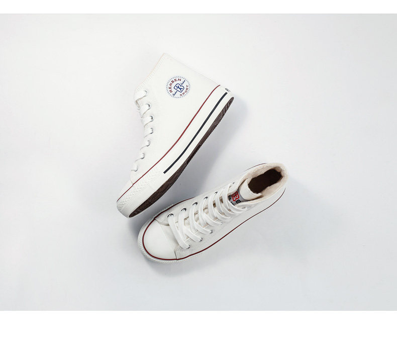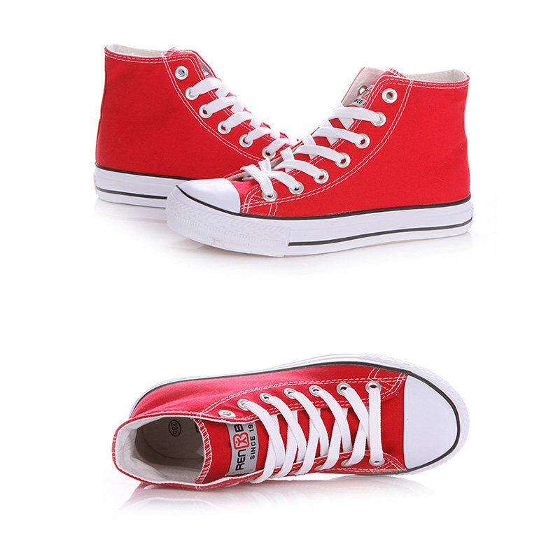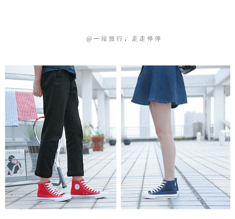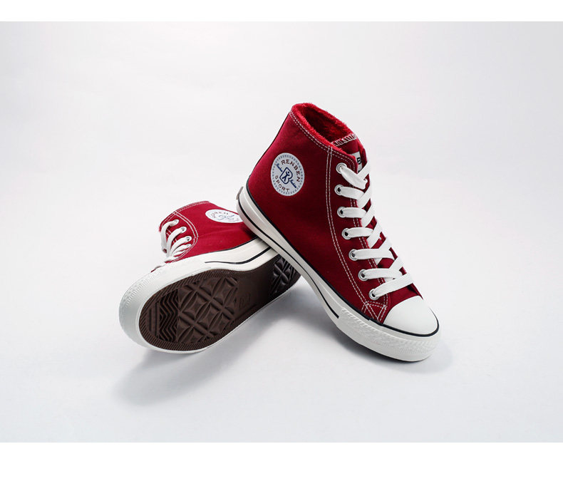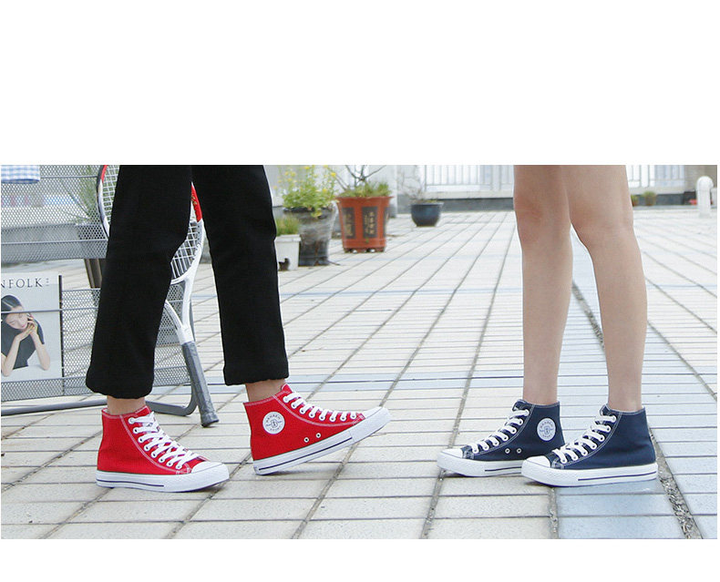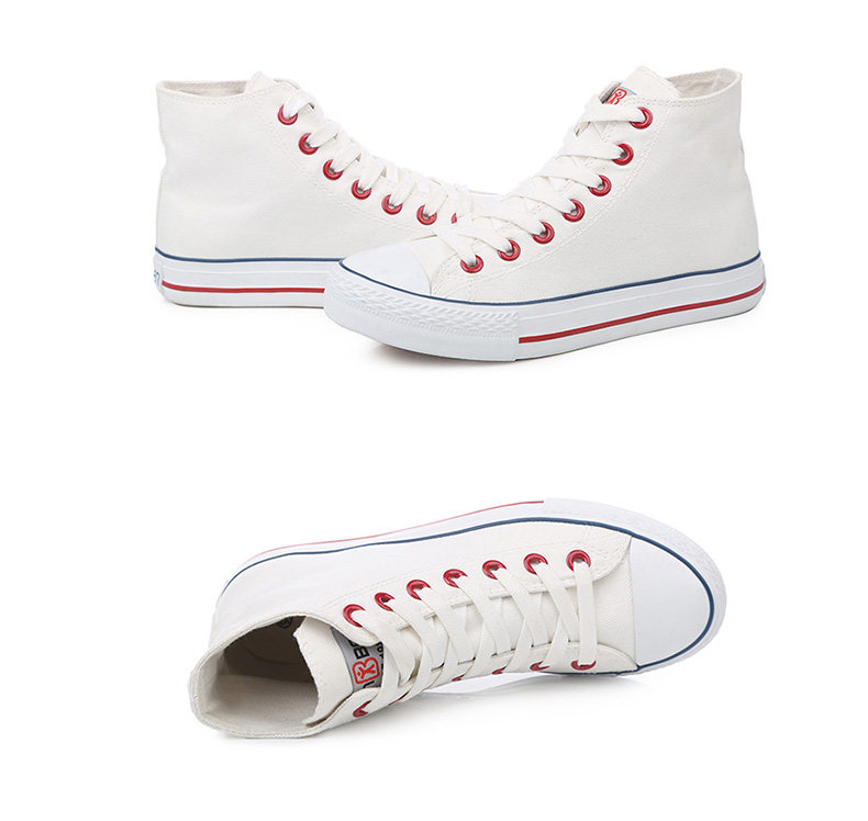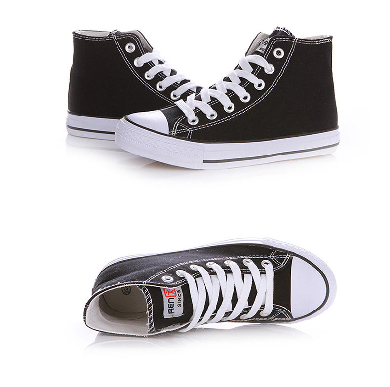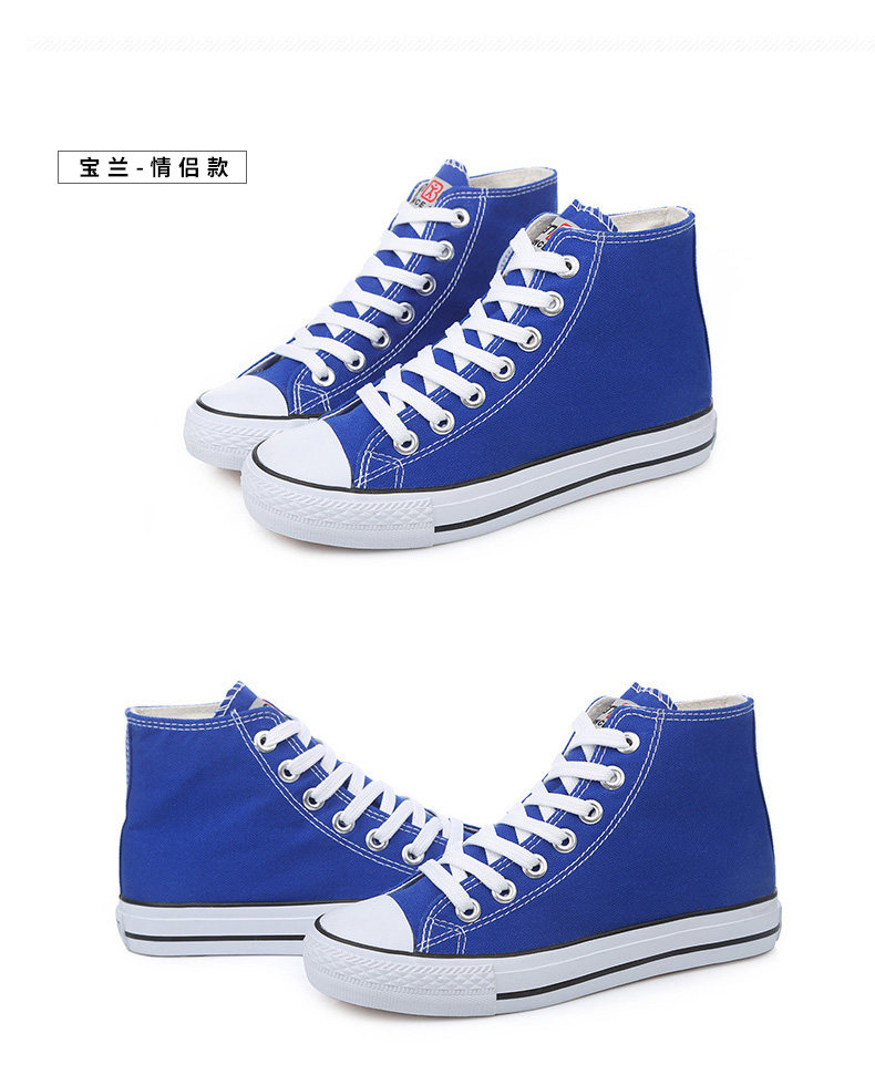 人本帆布鞋女韩版白色平底板鞋经典高帮情侣学生鞋系带运动女鞋子