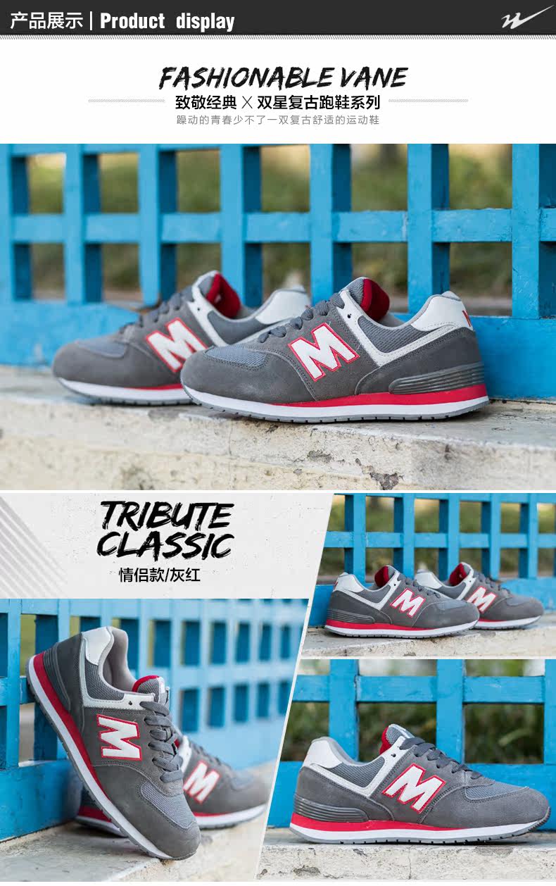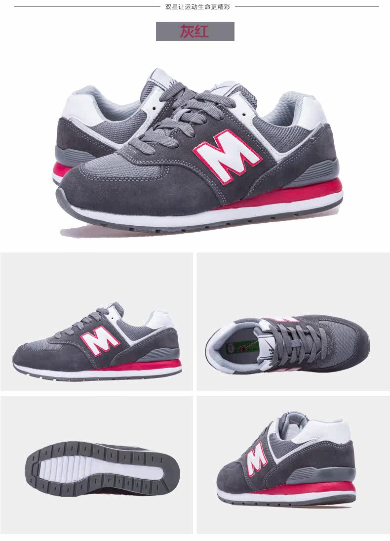 双星运动鞋男牛皮反绒复古跑鞋女慢跑鞋双星休闲运动情侣款跑鞋