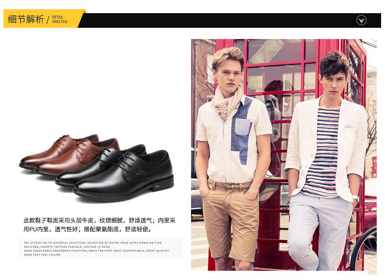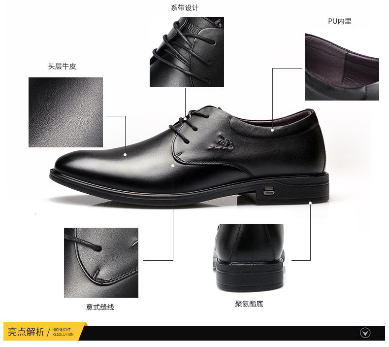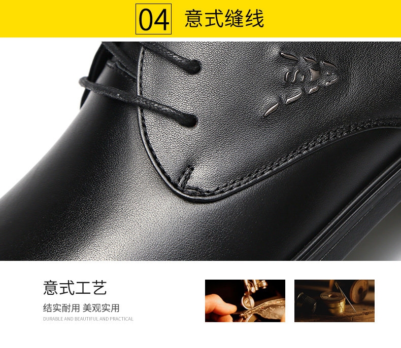 强人3515男鞋真皮透气商务休闲鞋男士皮鞋软底舒适英伦系带皮鞋男